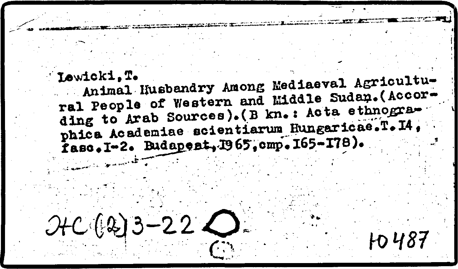 Книга (аналит. описание): Animal Husbandry Among Mediaeval Agricultural People of Western and Middle Sudan