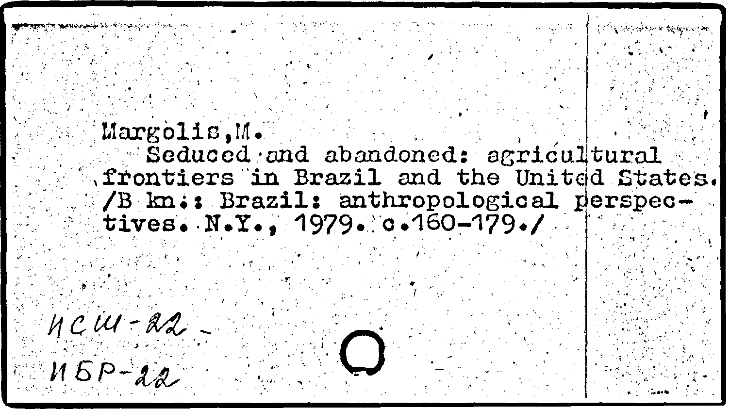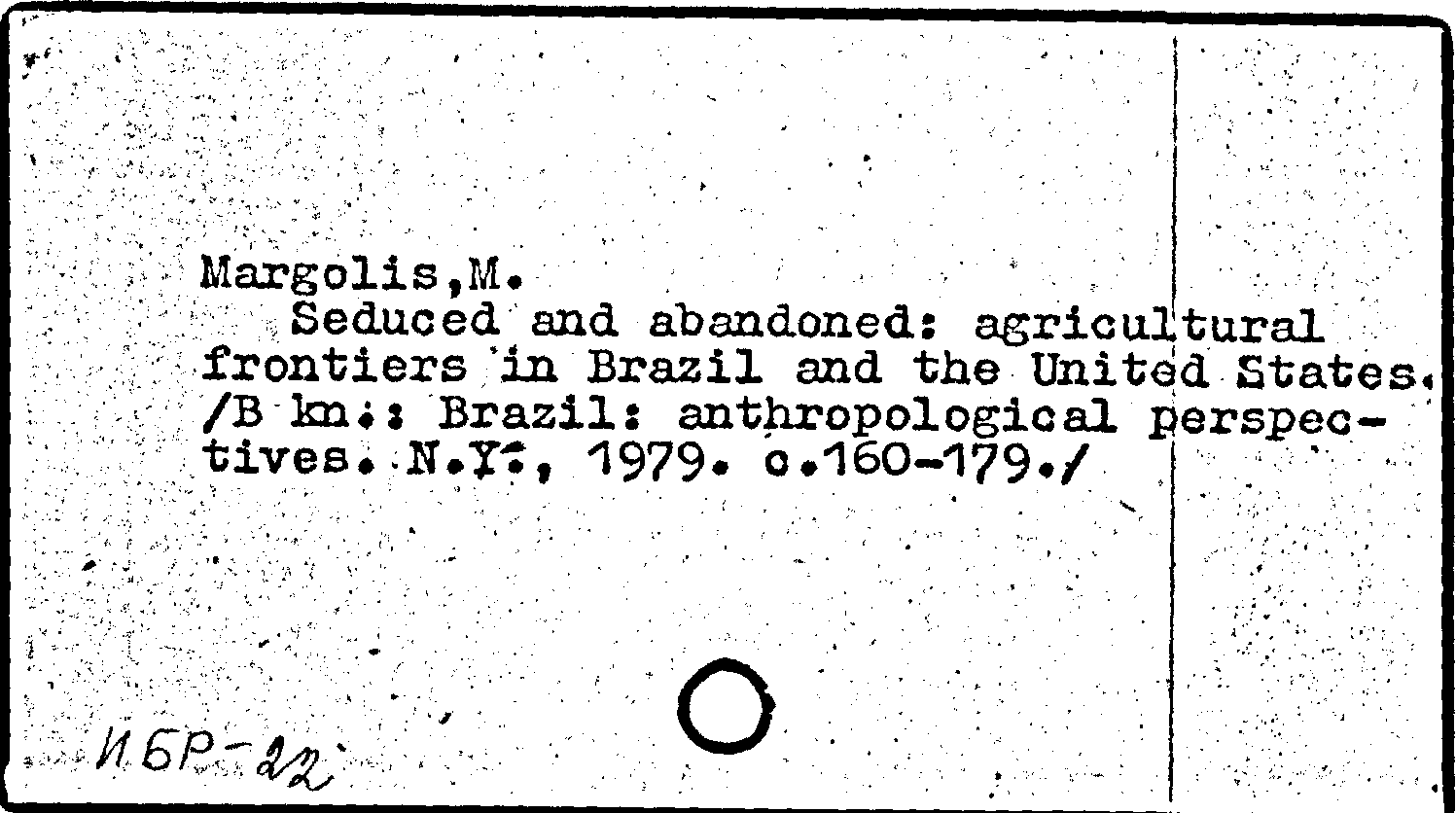 Книга (аналит. описание): Seduced and abandoned: agricultural frontiers in Brazil and the United States