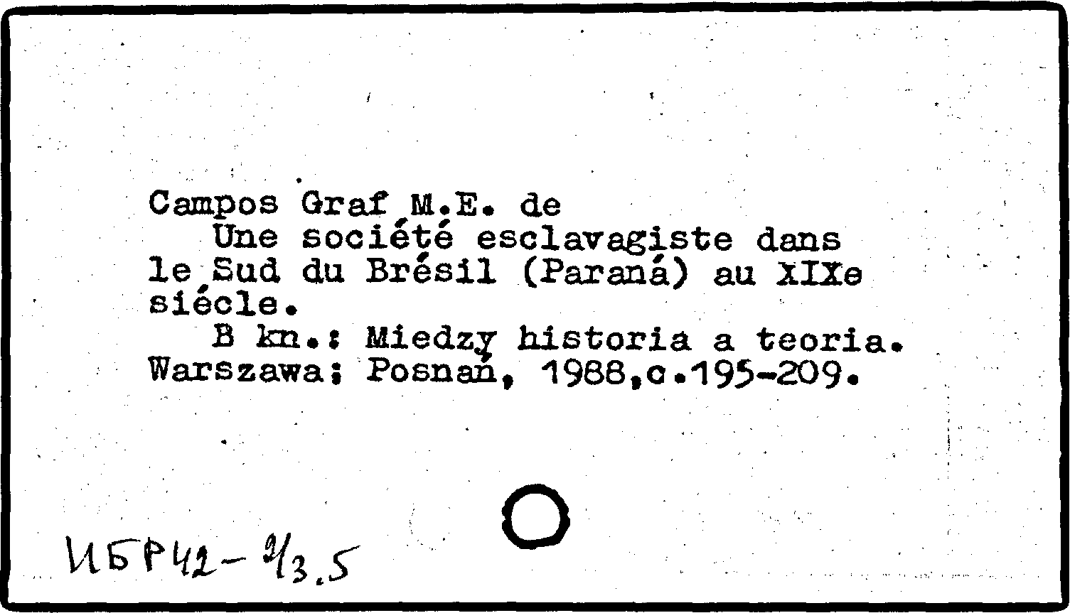Книга (аналит. описание): Une societe esclavagiste dans le Sud du Bresil (Parana) au XIXe siecle