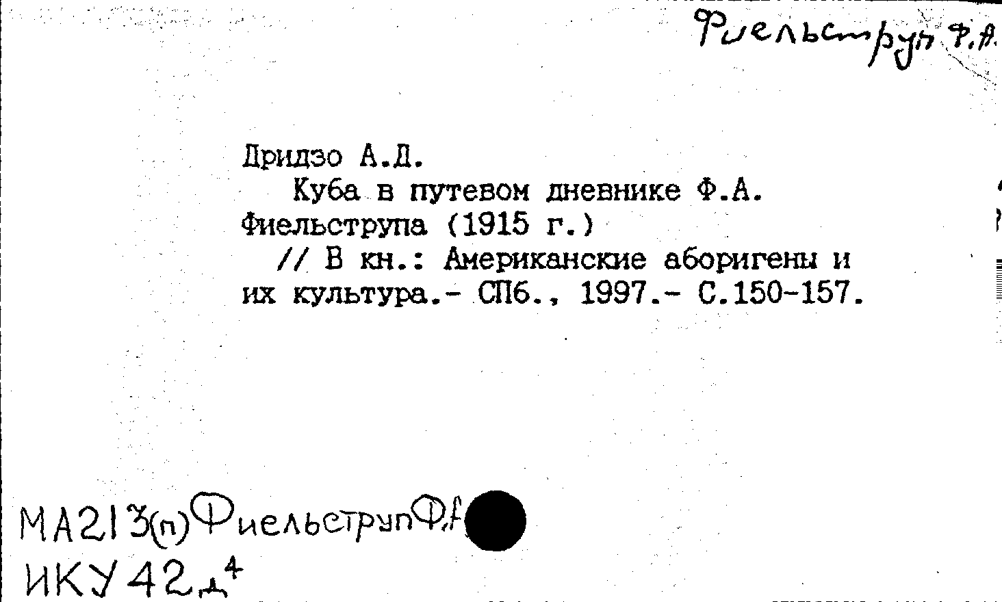 Книга (аналит. описание): Куба в путевом дневнике Ф. А. Фиельструпа (1915 г.)