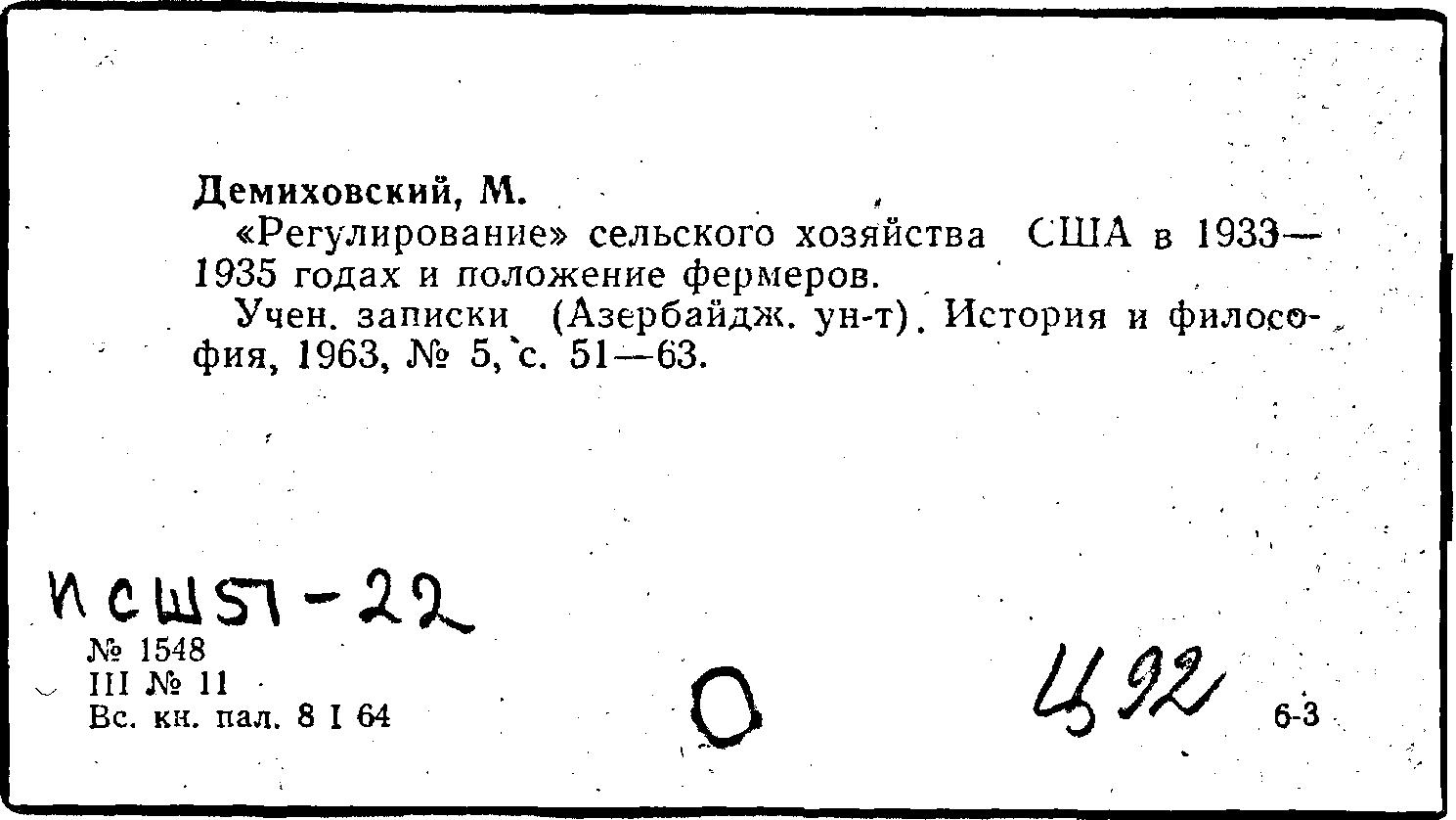 Книга (аналит. описание): "Регулирование" сельского хозяйства США в 1933-1935 годах и положение фермеров