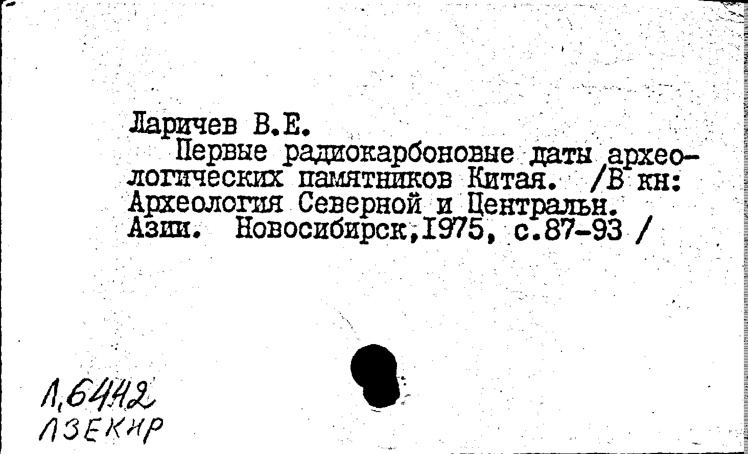 Книга (аналит. описание): Первые радиокарбоновые даты археологических памятников Китая