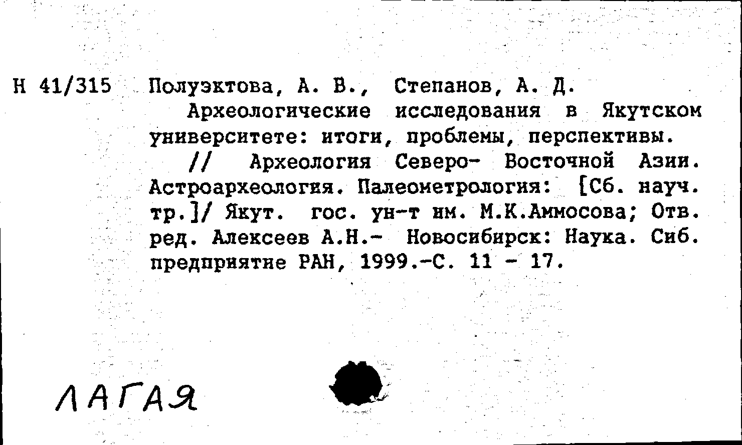Книга (аналит. описание): Археологические исследования в Якутском университете: итоги, проблемы, перспективы