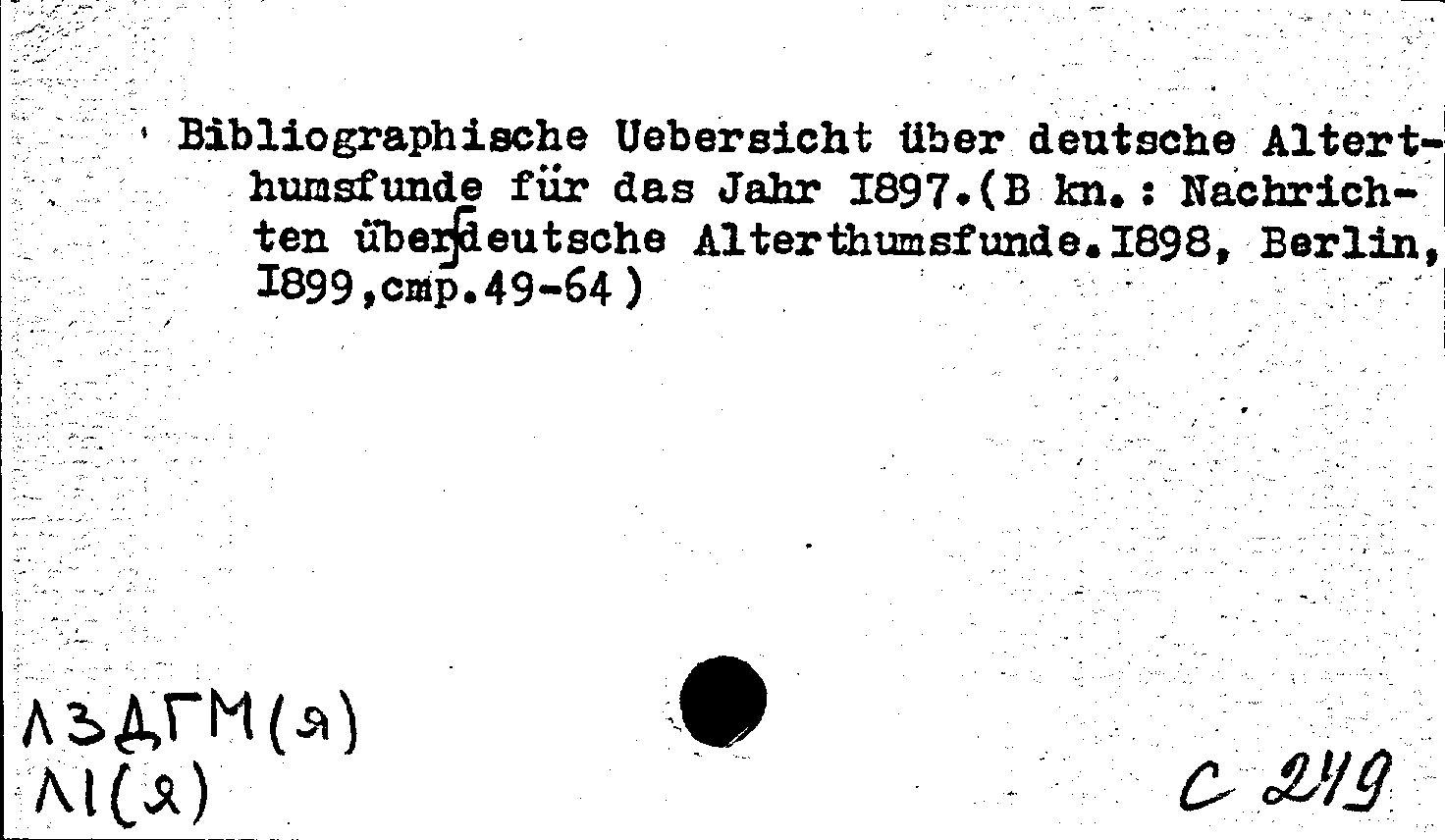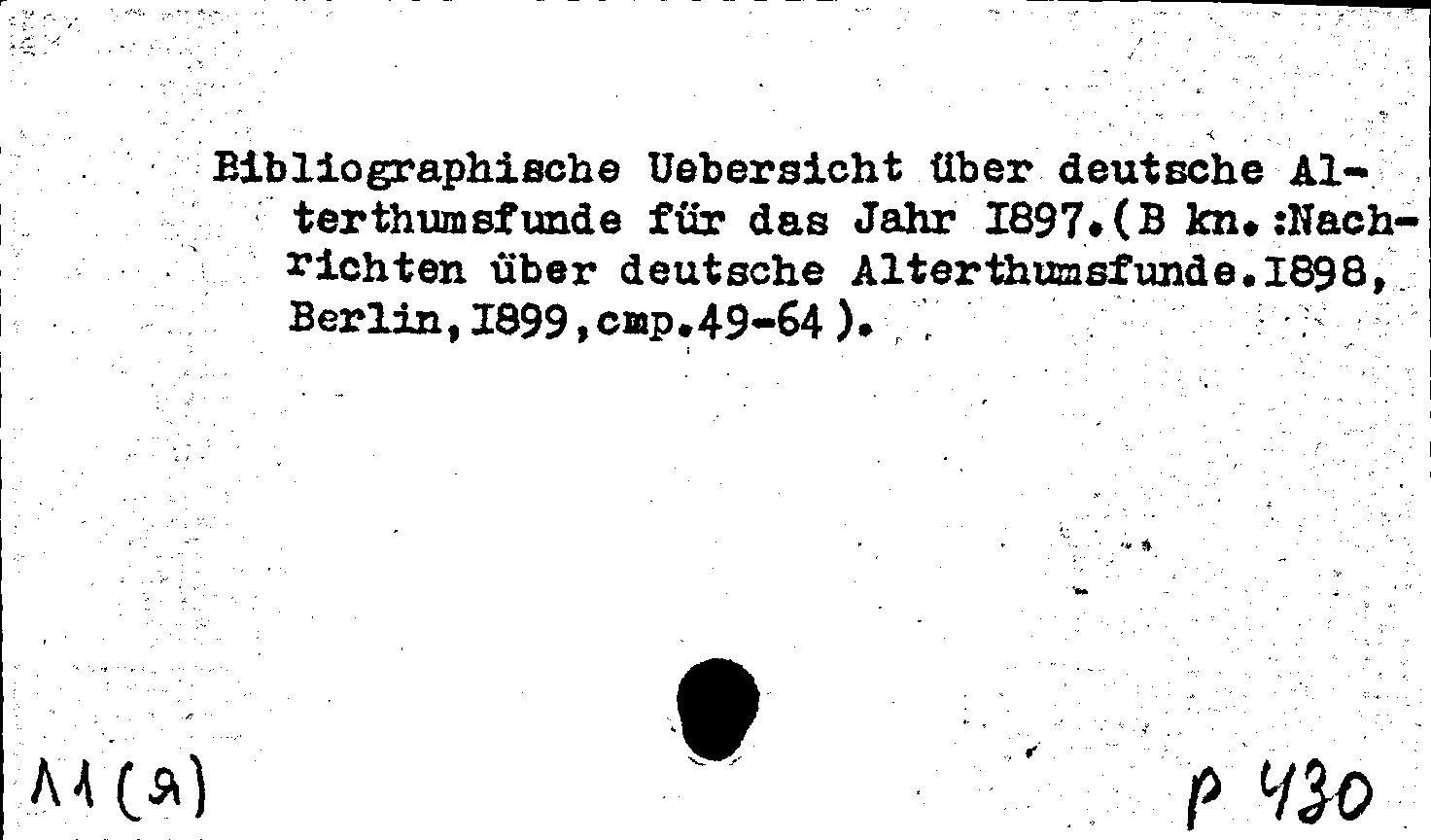 Книга (аналит. описание): Bibliographische Uebersicht uber deutsche Alterthumsfunde fur das Jahr 1897