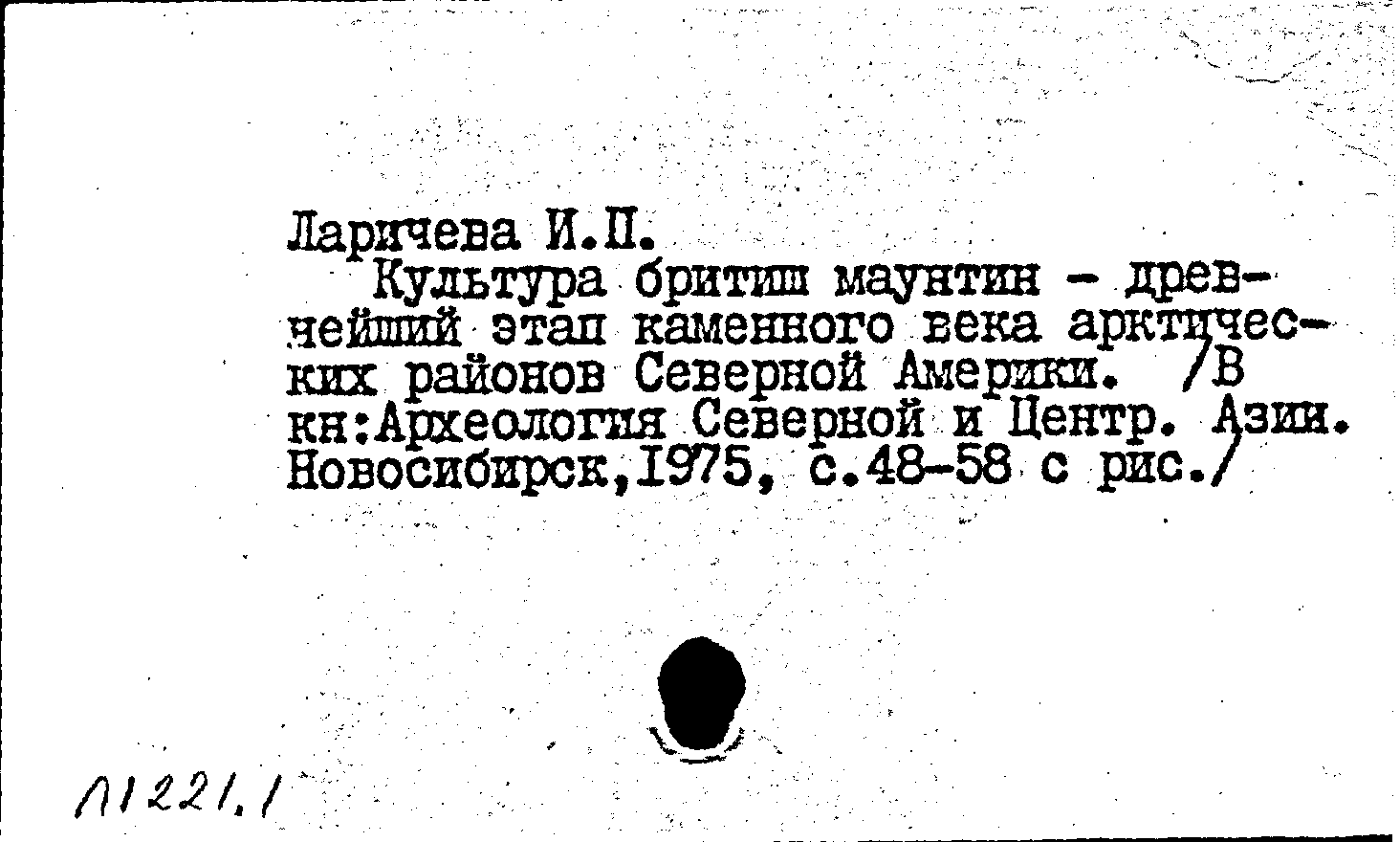 Книга (аналит. описание): Культура бритиш маунтин - древнейший этап каменного века арктических районов Северной Америки