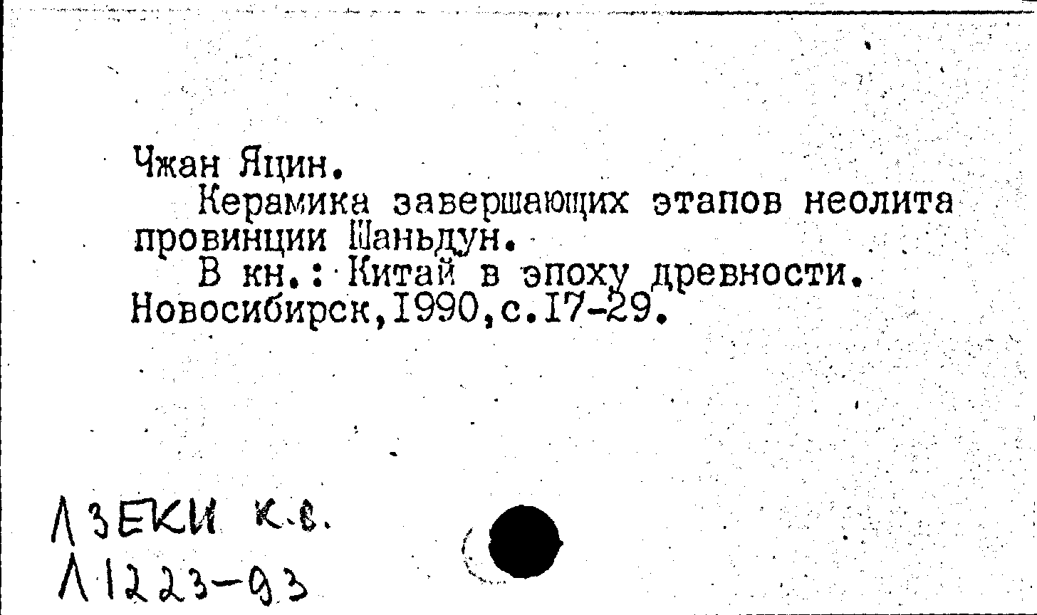 Книга (аналит. описание): Керамика завершающих этапов неолита провинции Шаньдун