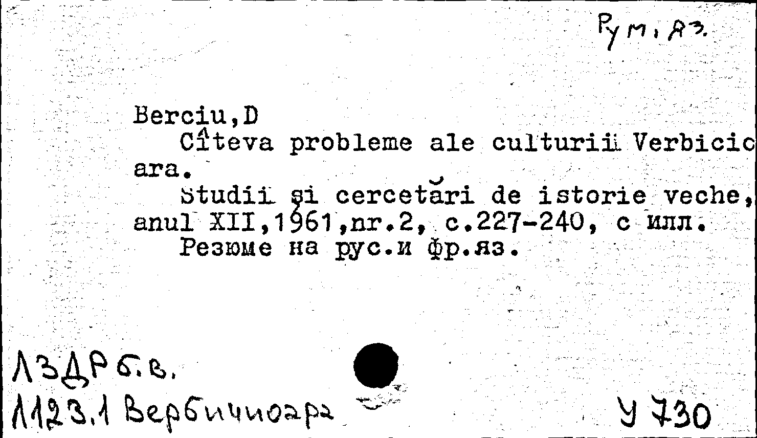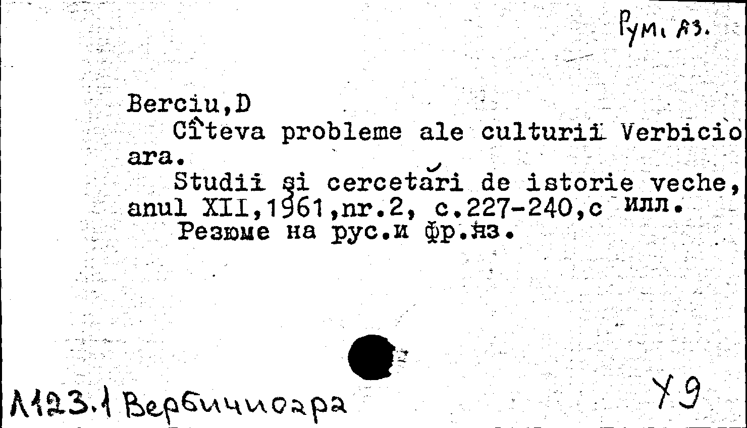 Книга (аналит. описание): Citeva probleme ale culturii Verbicio ara