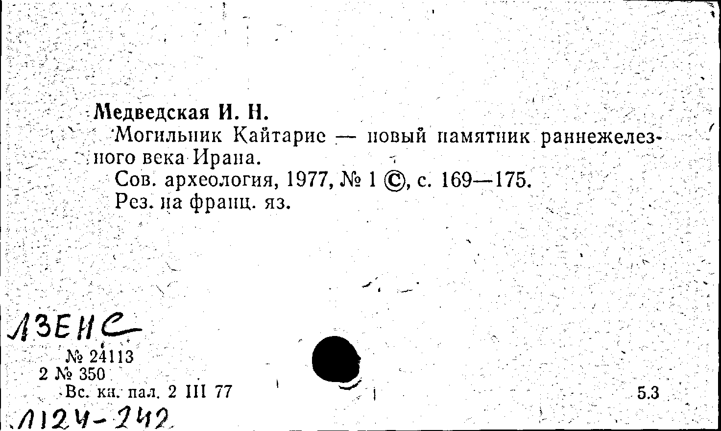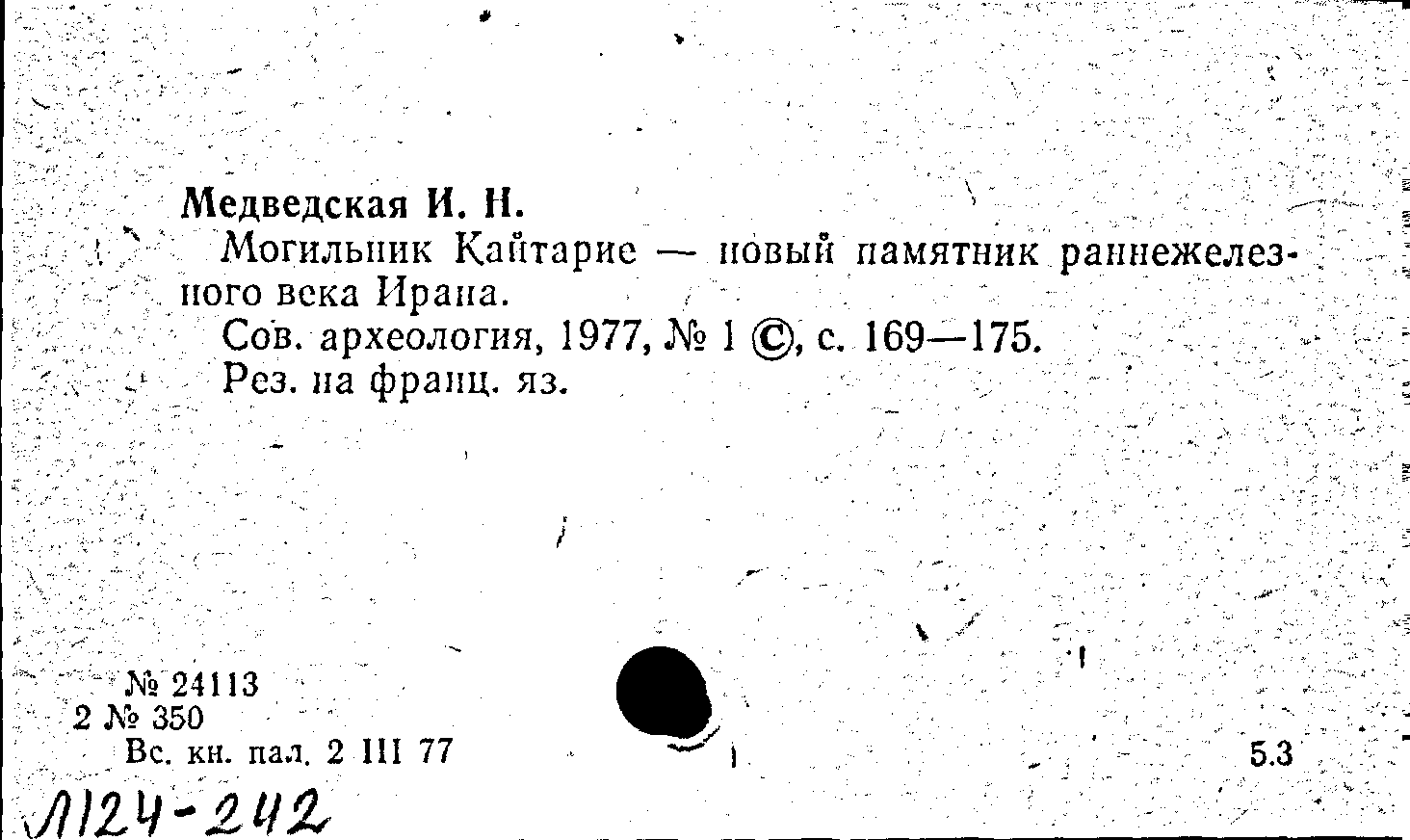 Статья: Могильник Кайтарие - новый памятник раннежелезного века Ирана. Советская археология, № 1 /1977: № 1 /1977