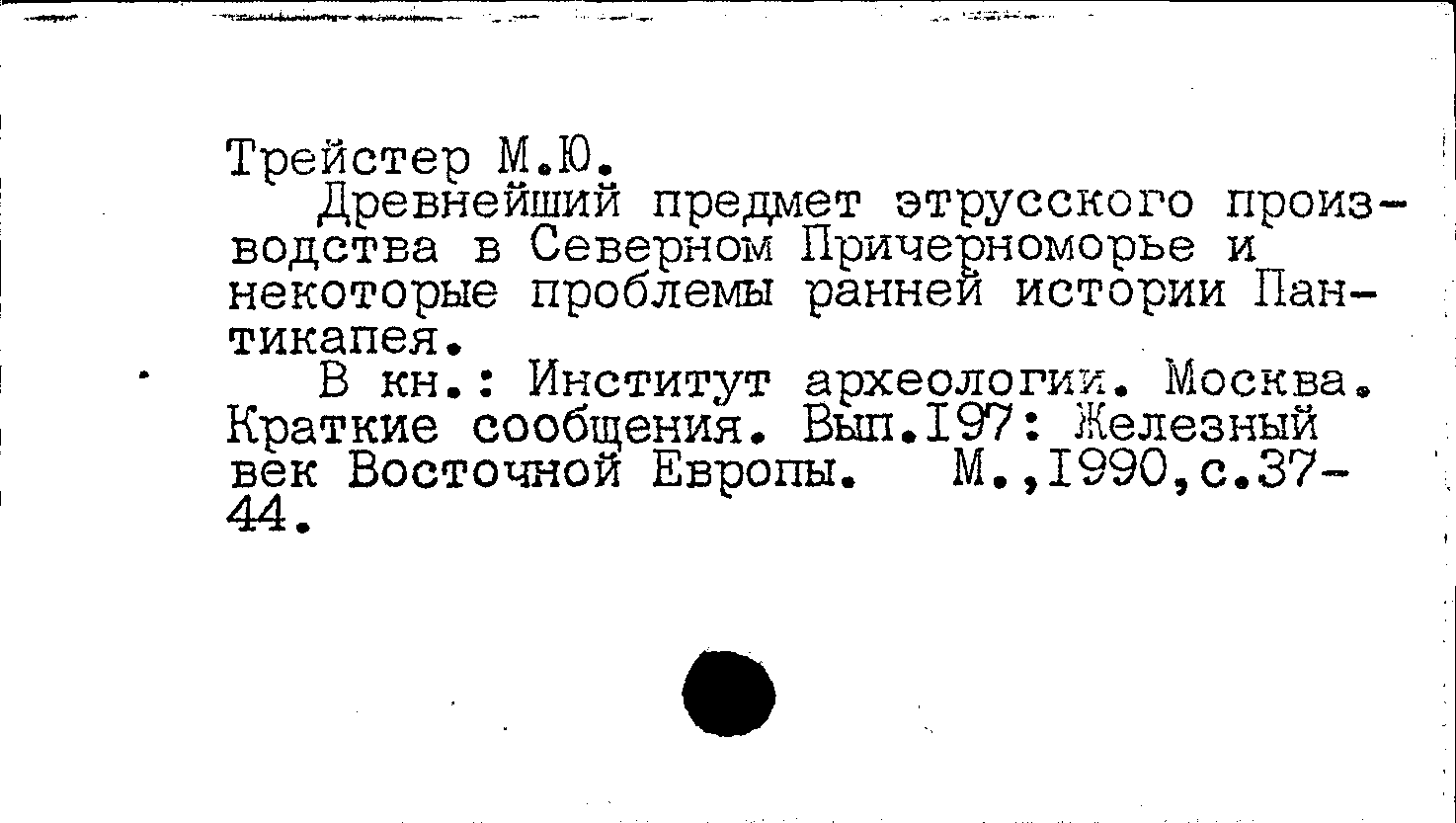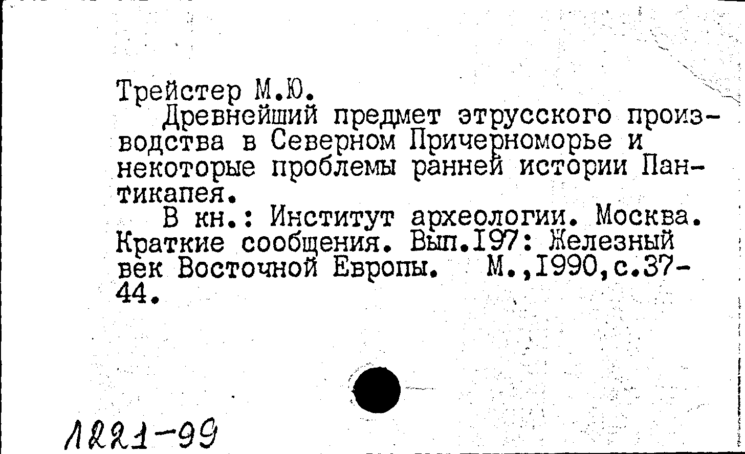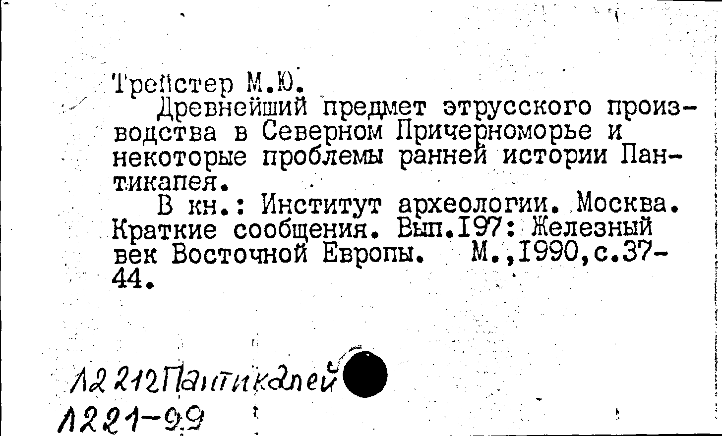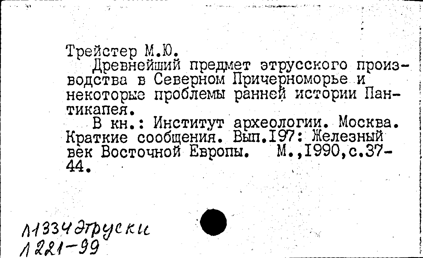 Книга (аналит. описание): Древнейший предмет этрусского производства в Северном Причерноморье и некоторые проблемы ранней истории Пантикапея