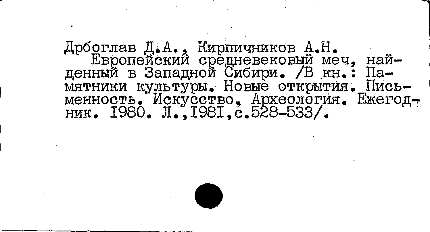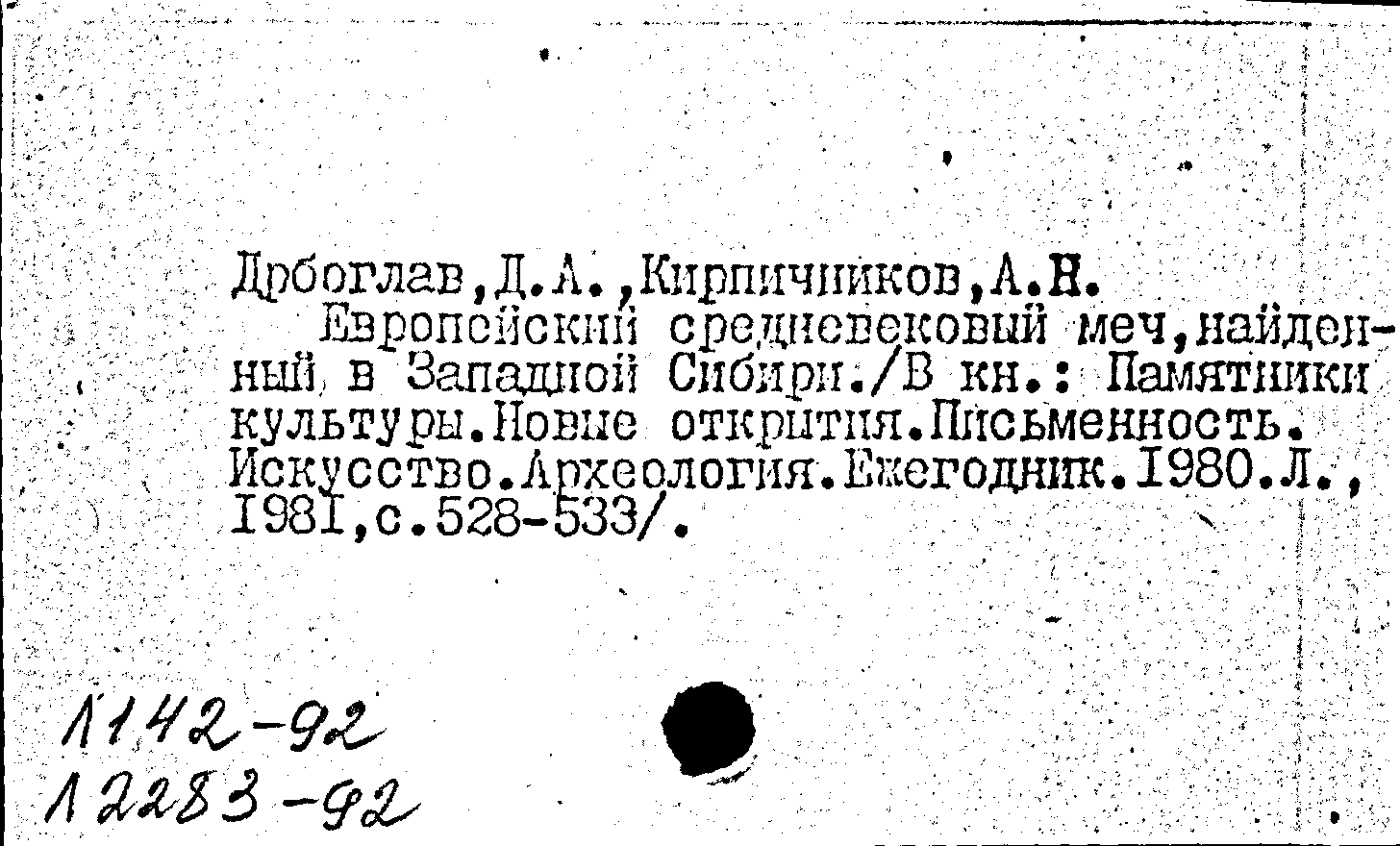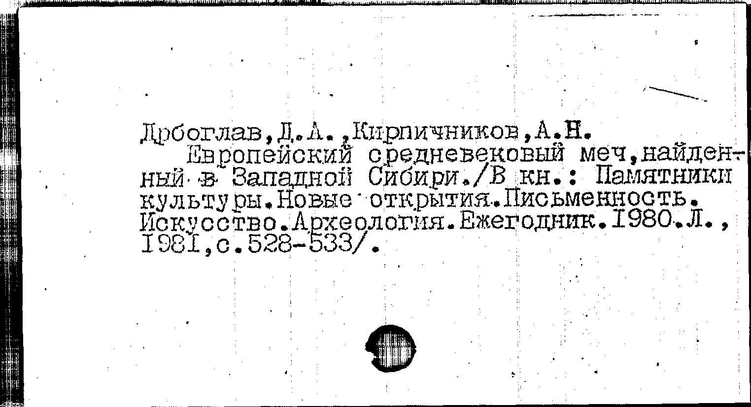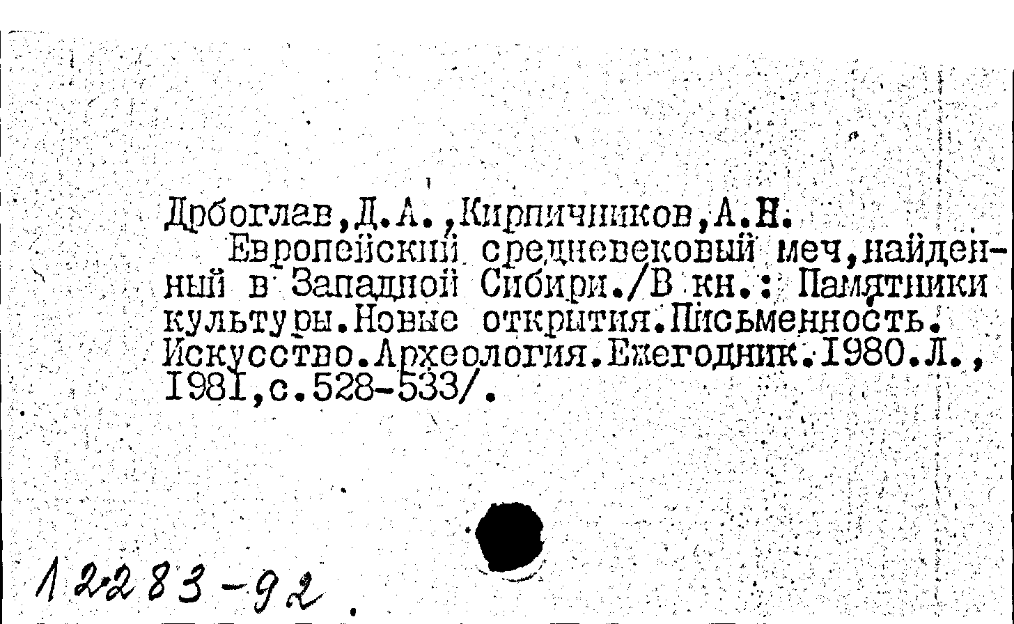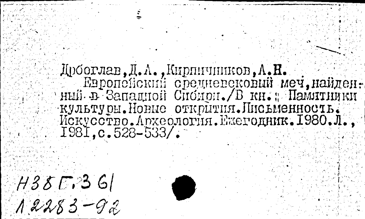 Книга (аналит. описание): Европейский средневековый меч, найденный в Западной Сибири