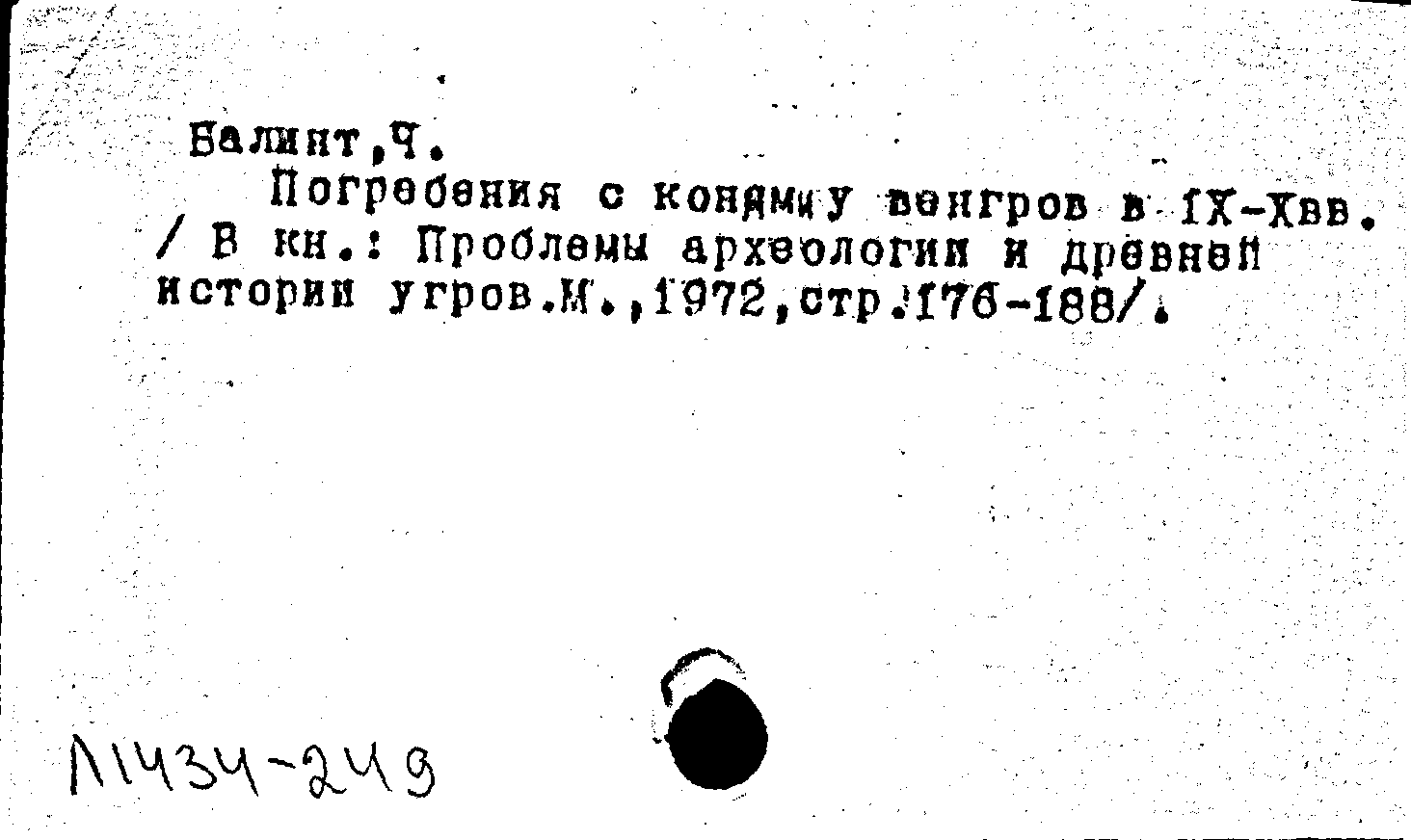 Книга (аналит. описание): Погребения с конями у венгров в IX-X вв.