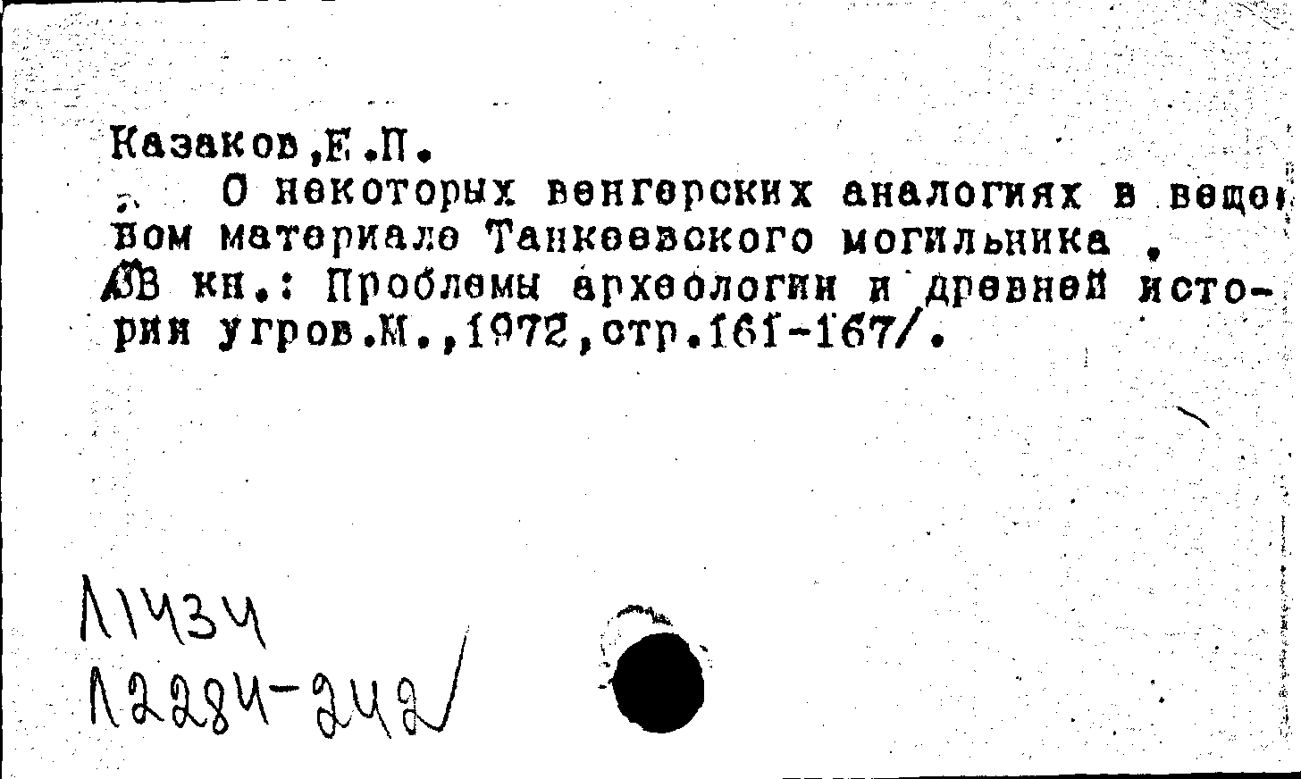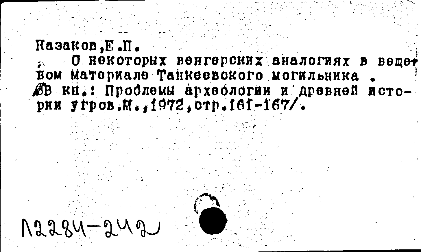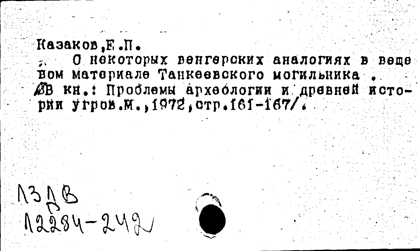 Книга (аналит. описание): О некоторых венгерских аналогиях в вещевом материале Танкеевского могильника
