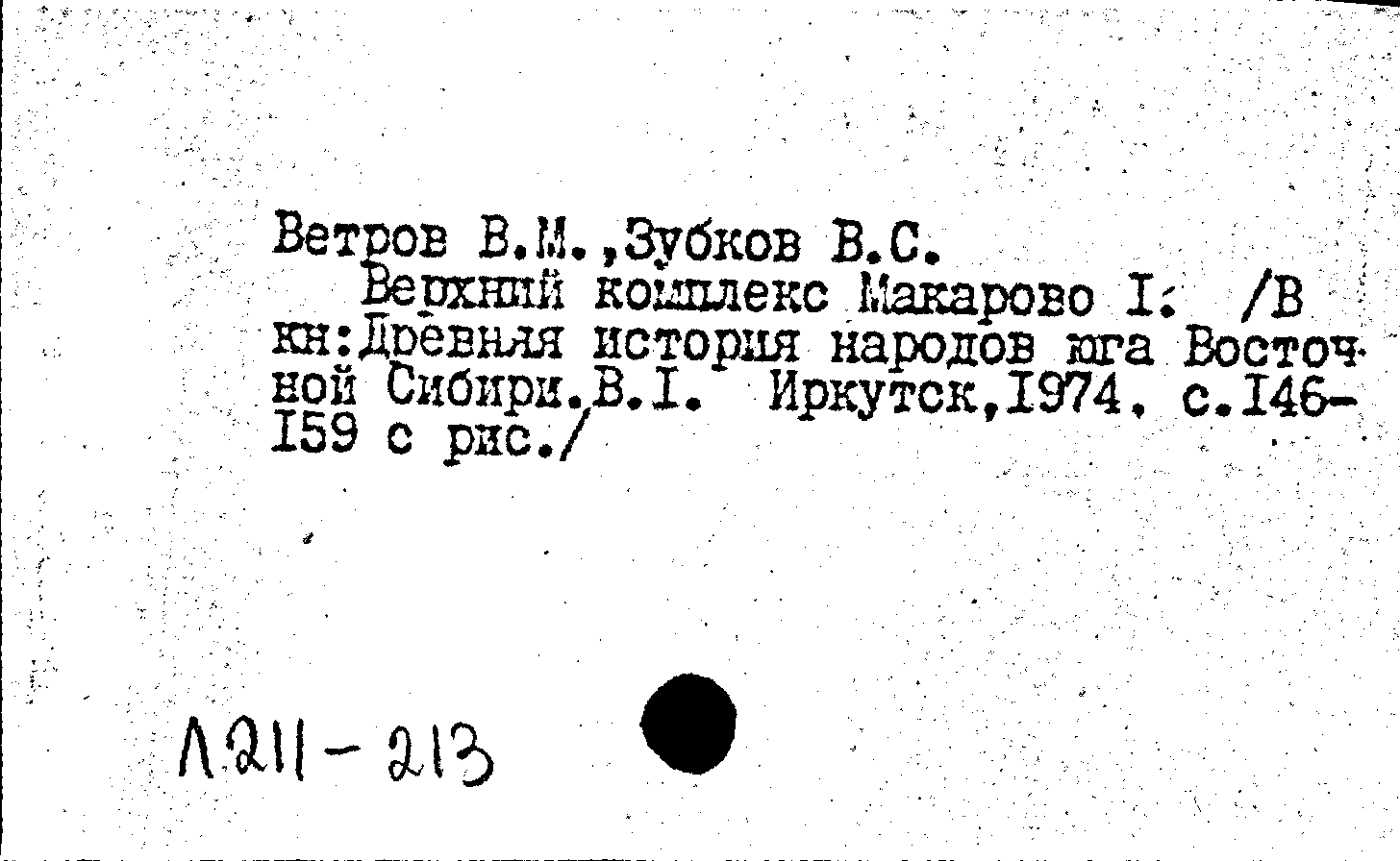 Книга (аналит. описание): Верхний комплекс Макарово I