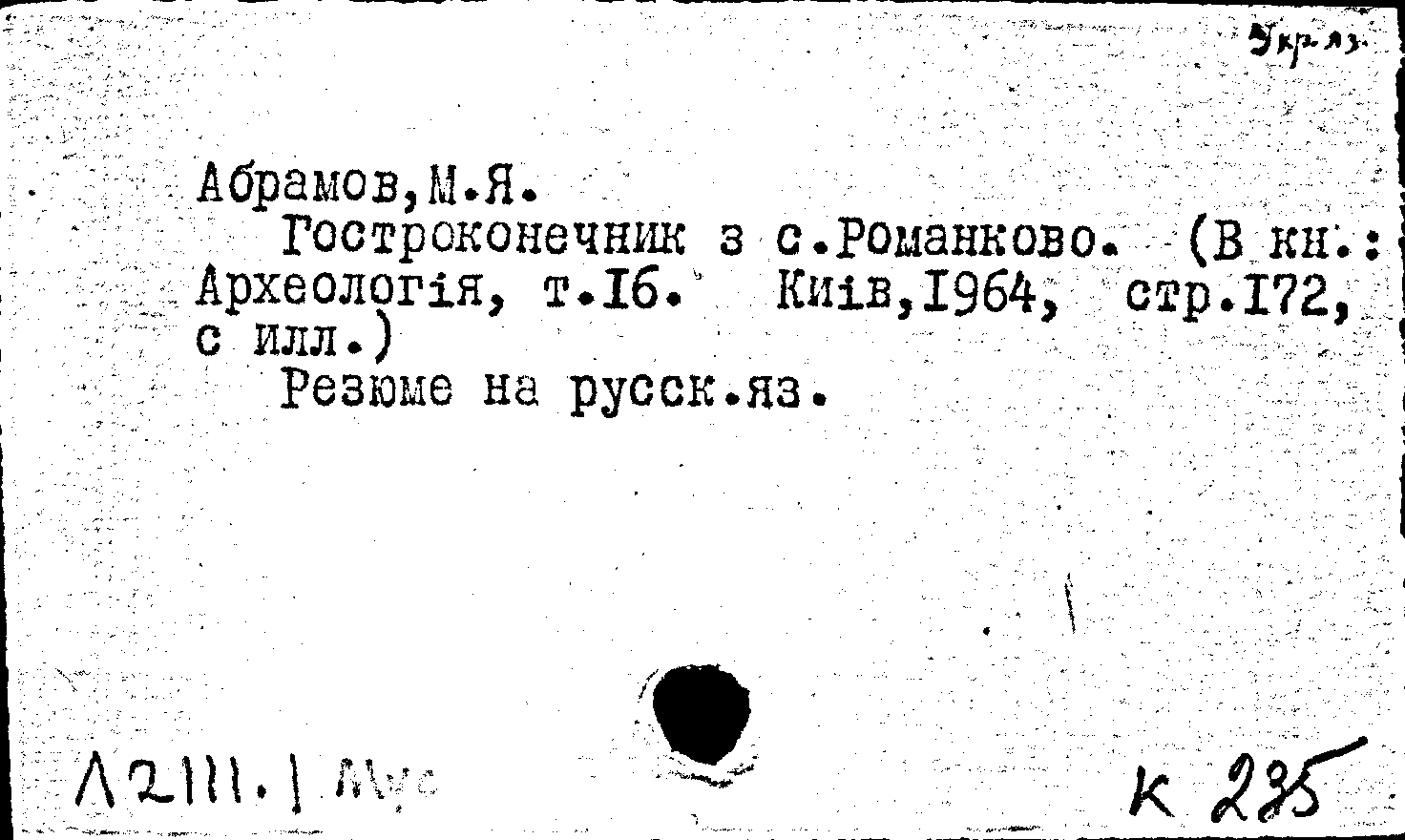 Книга (аналит. описание): Гостроконечник з с. Романково