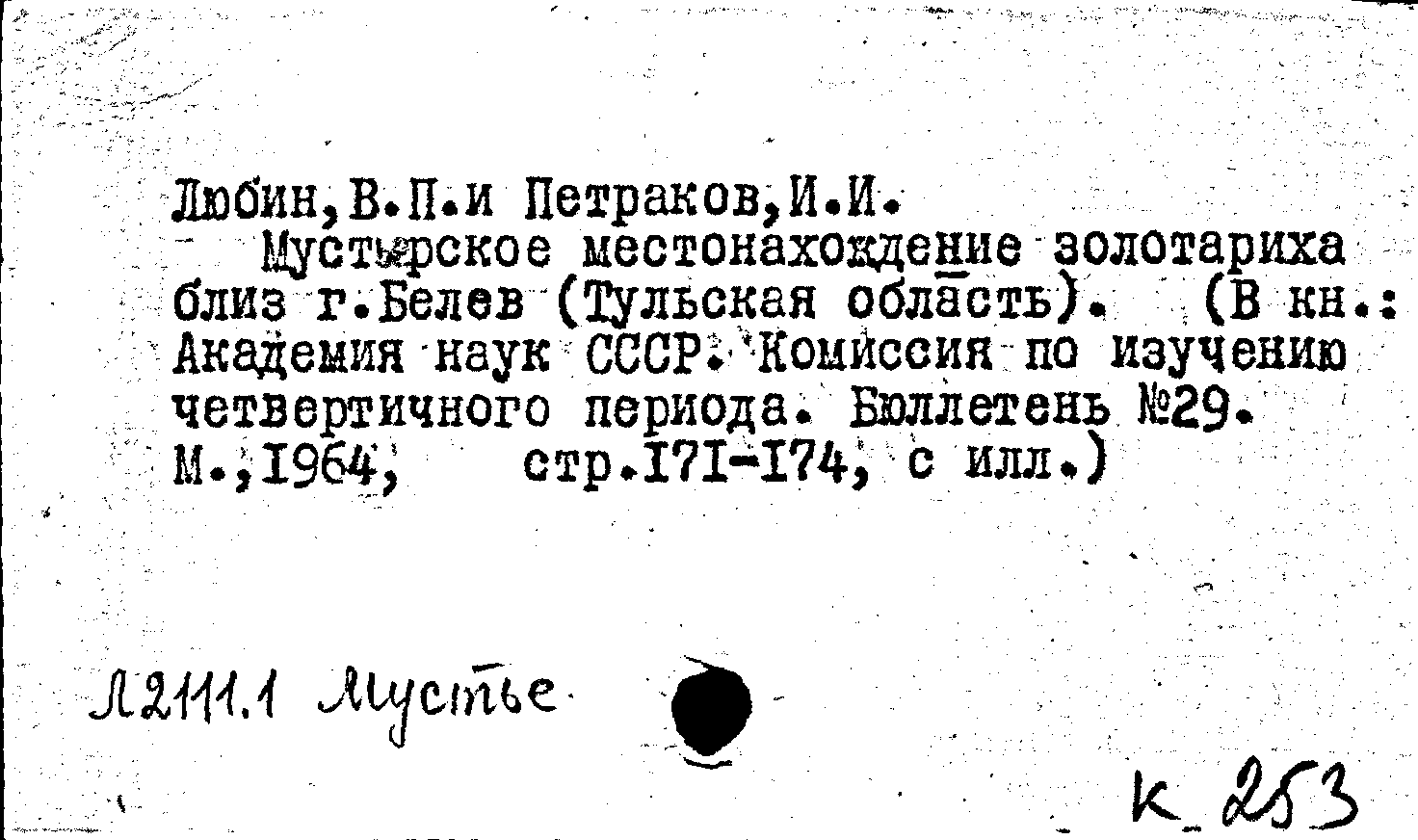 Книга (аналит. описание): Мустьерское местонахождение золотариха близ г. Белев (Тульская область)