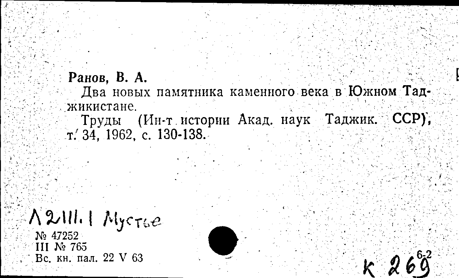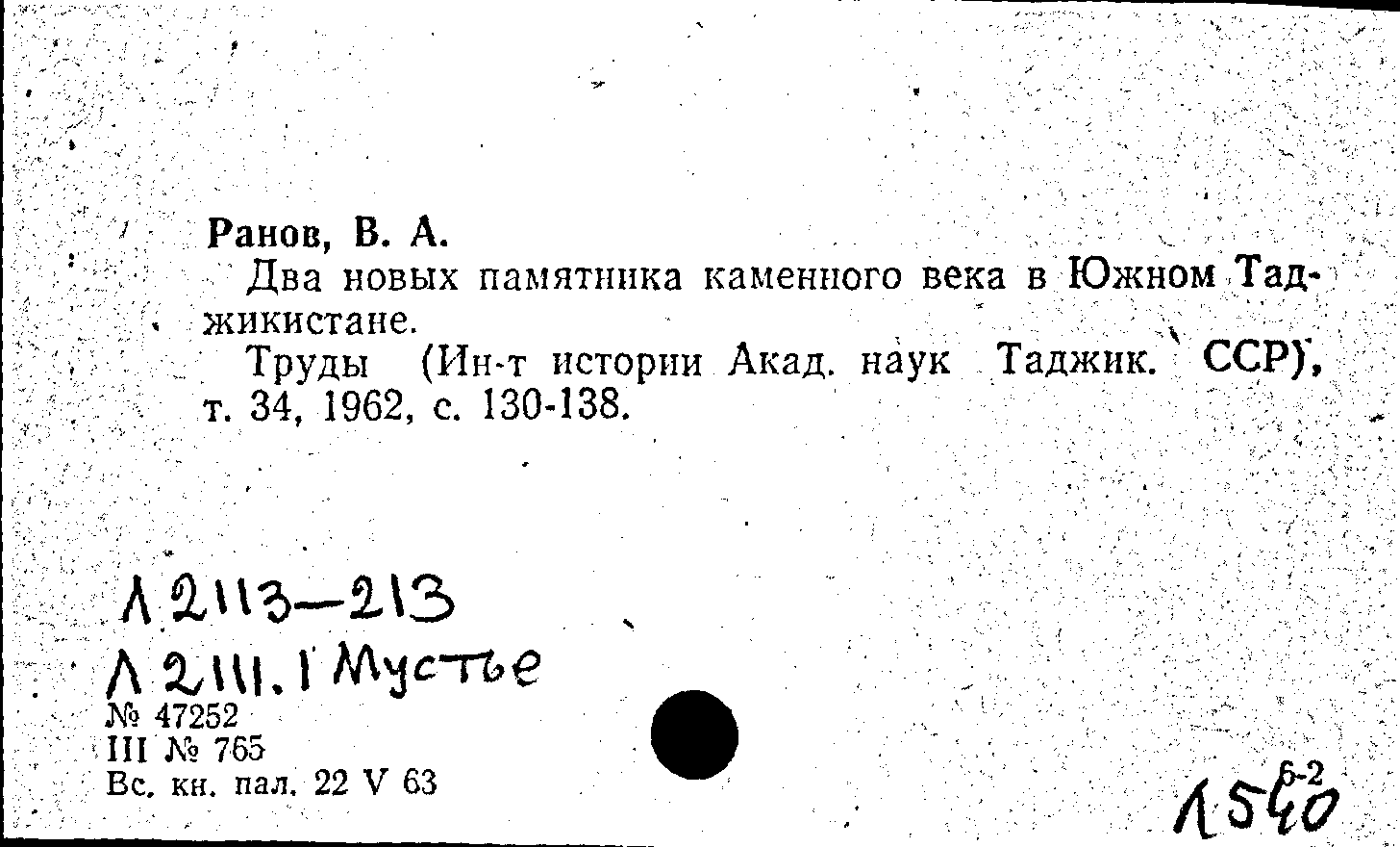 Книга (аналит. описание): Два новых памятника каменного века в Южном Таджикистане
