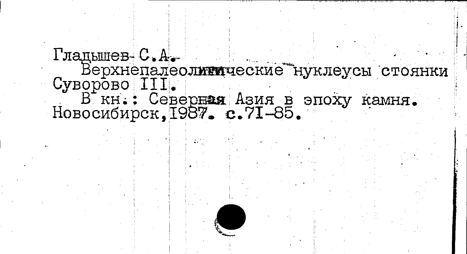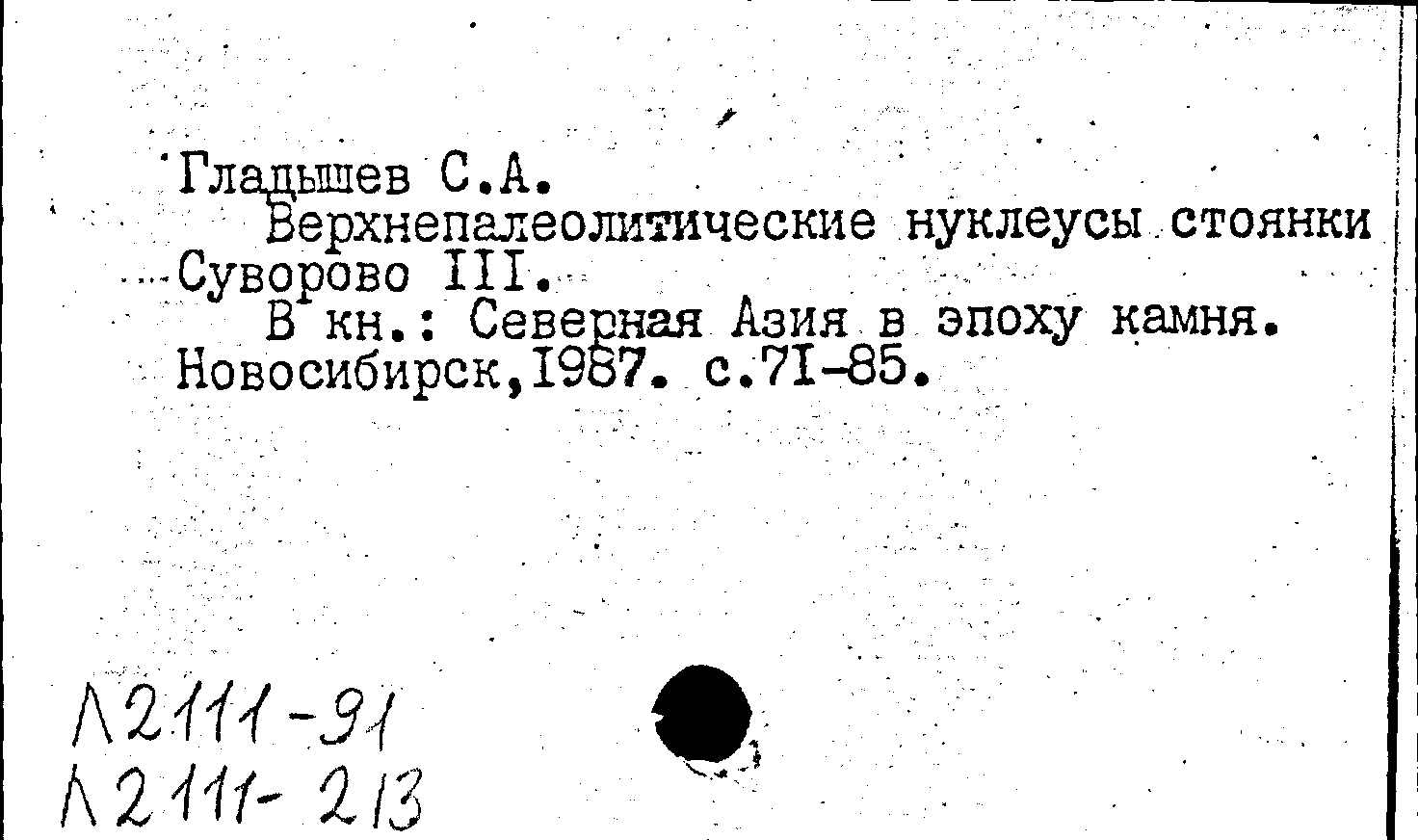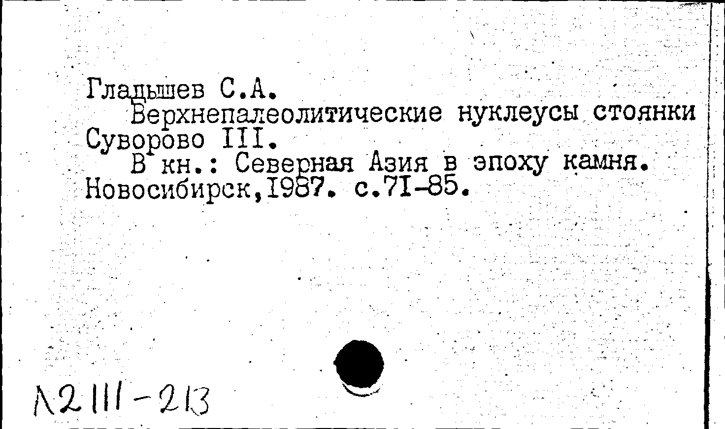 Книга (аналит. описание): Верхнепалеолитические нуклеусы стоянки Суворово III