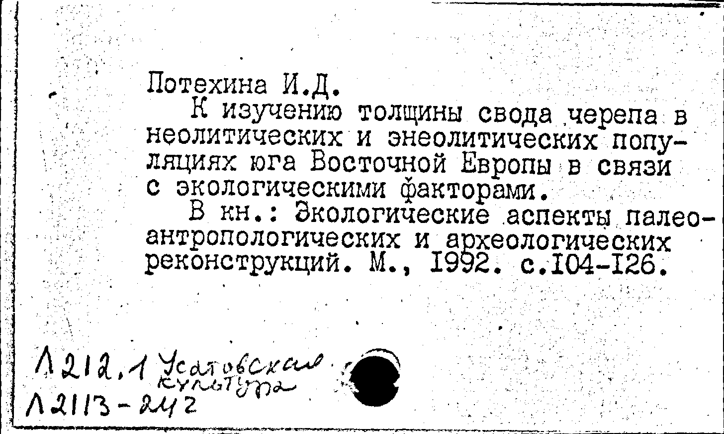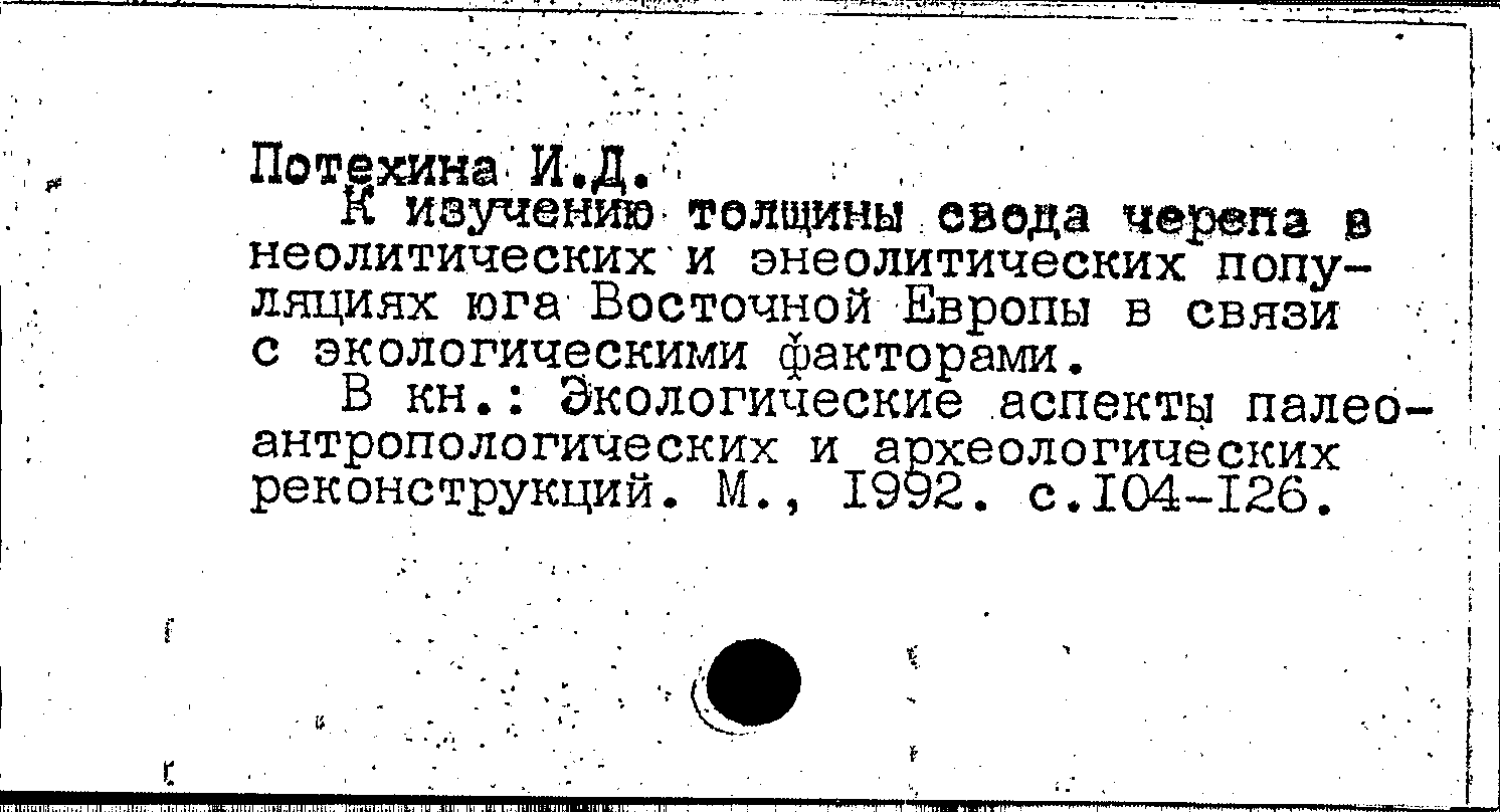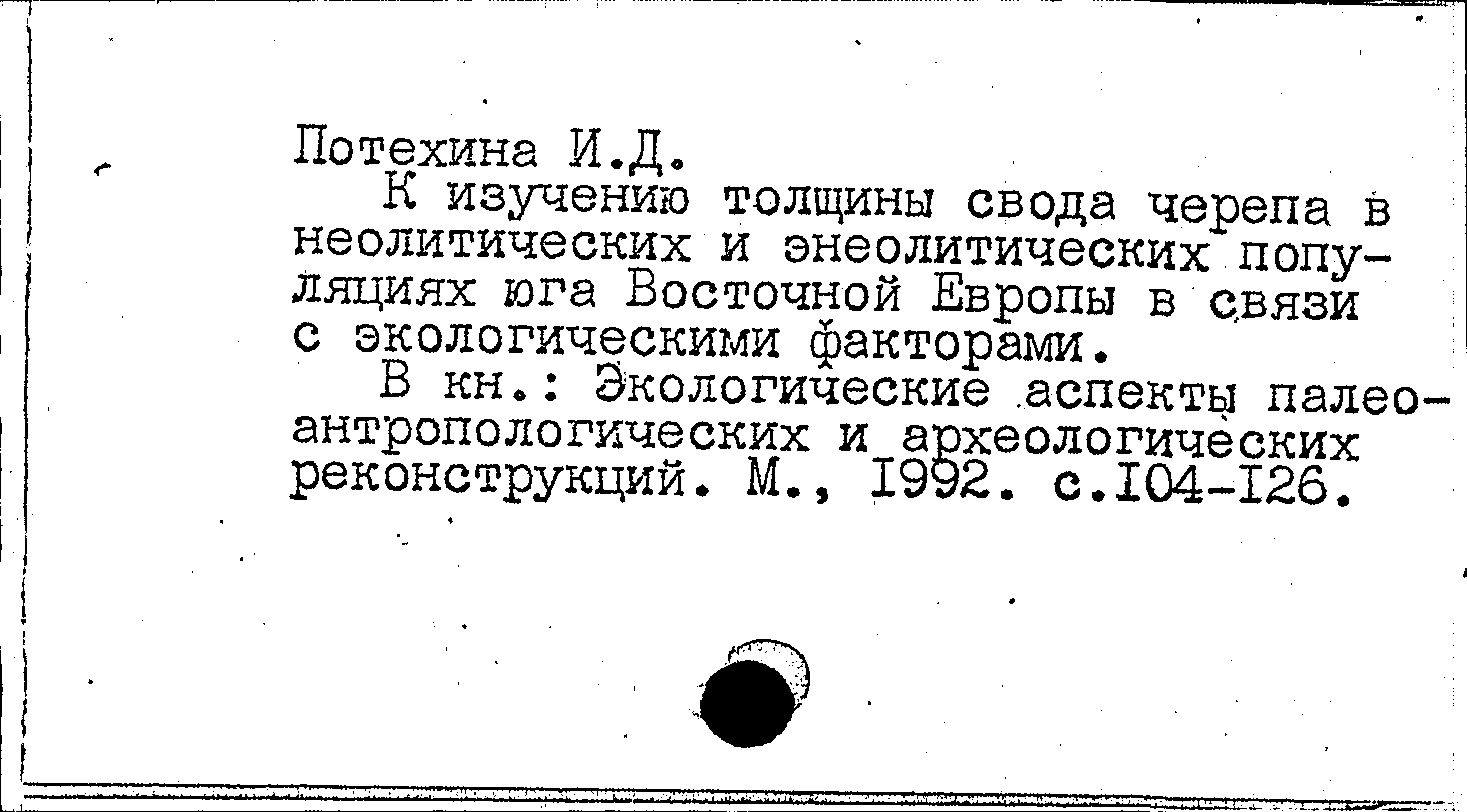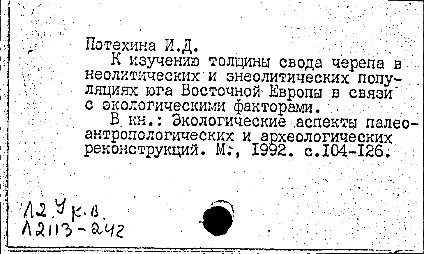 Книга (аналит. описание): К изучению толщины свода черепа в неолитических и энеолитических популяциях юга Восточной Европы в связи с экологическими факторами