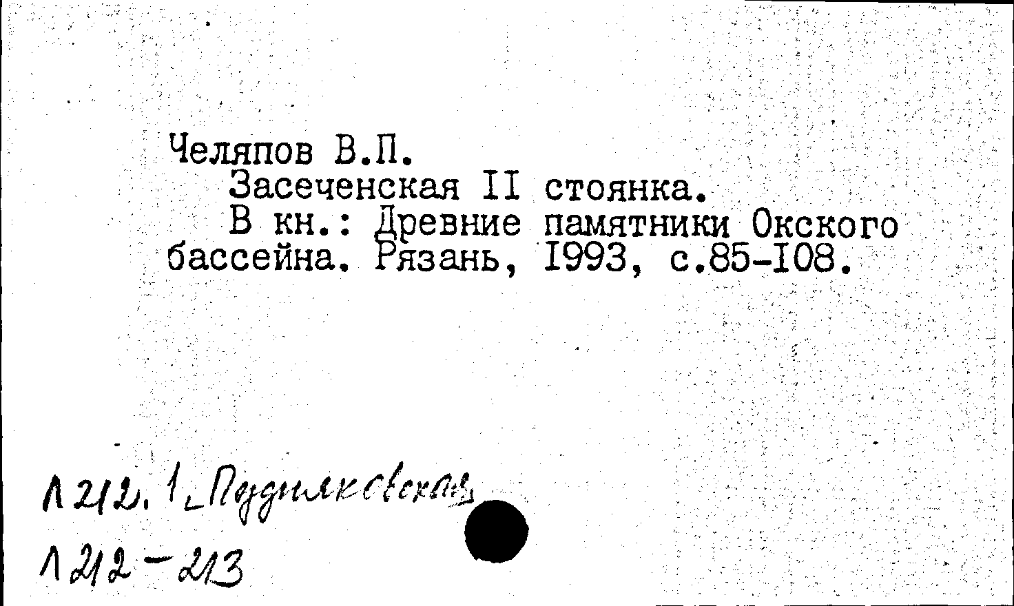 Книга (аналит. описание): Засеченская II стоянка