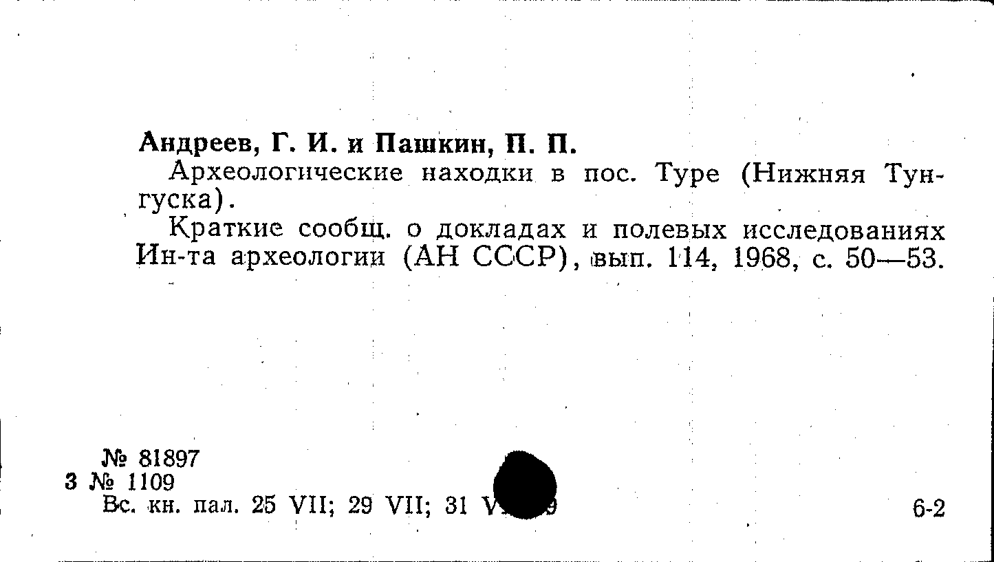 Книга (аналит. описание): Археологические находки в пос. Туре (Нижняя Тунгуска)