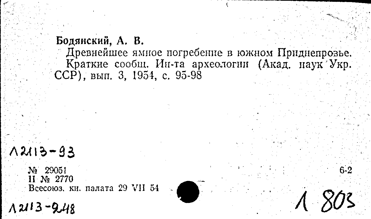 Книга (аналит. описание): Древнейшее ямное погребение в южном Приднепровье