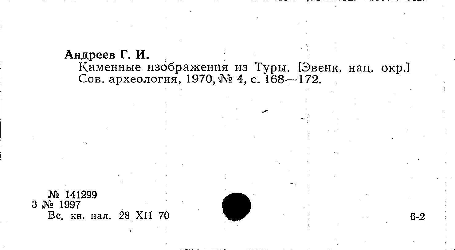 Статья: Каменные изображения из Туры. [Эвенкийский национальный округ]. Советская археология, № 4 /1970: № 4 /1970