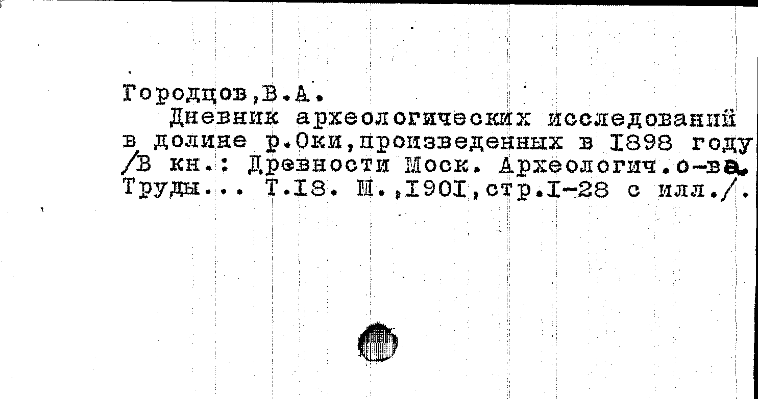 Дневник археологических исследований в долине р. Оки, произведенных в 1898 году