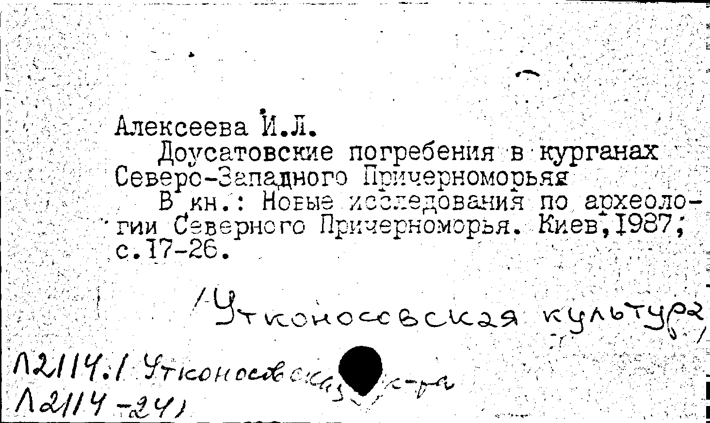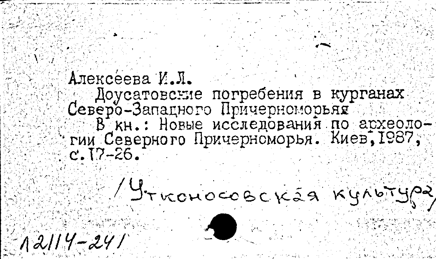 Книга (аналит. описание): Доусатовские погребения в курганах Северо-Западного Причерноморья