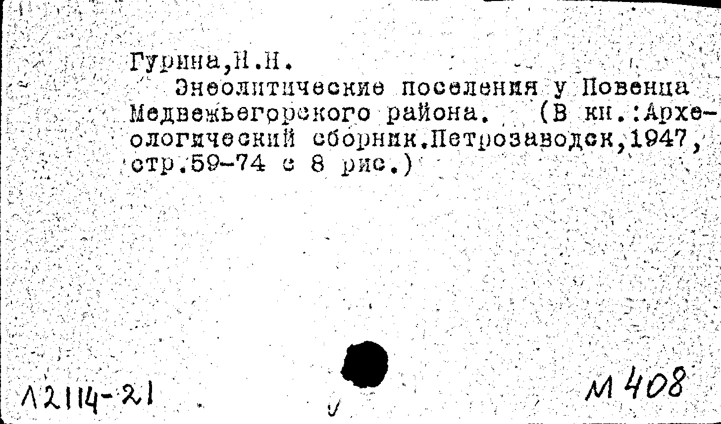 Книга (аналит. описание): Энеолитические поселения у Повенца Медвежьегорского района