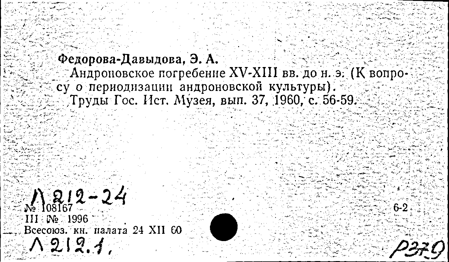Бронзовый век СССР (археология) \ Археологические культуры \ Андроновская культура (179)
