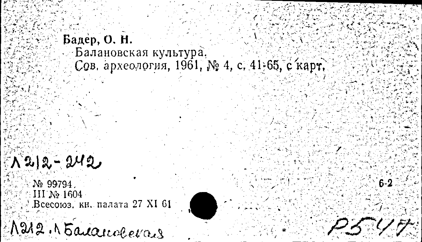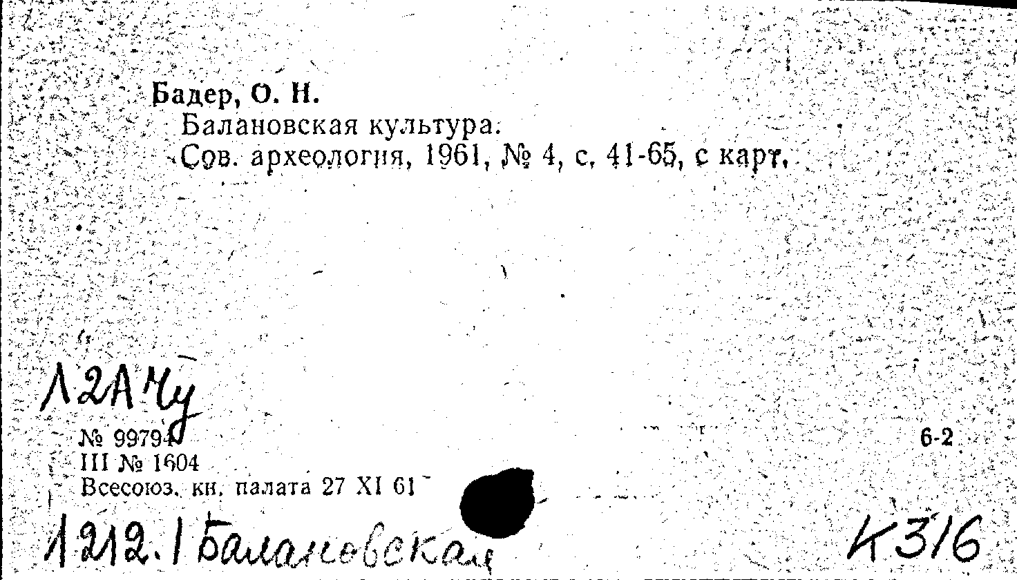 Статья: Балановская культура. Советская археология, № 4 /1961: № 4 /1961