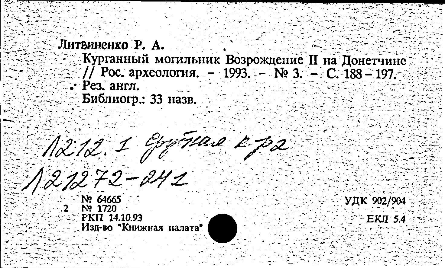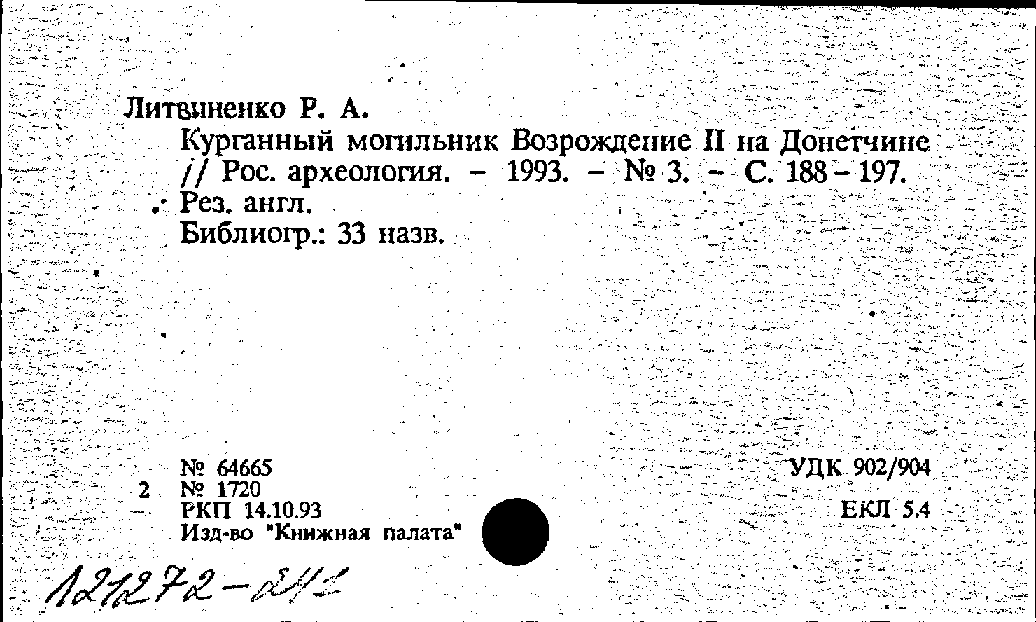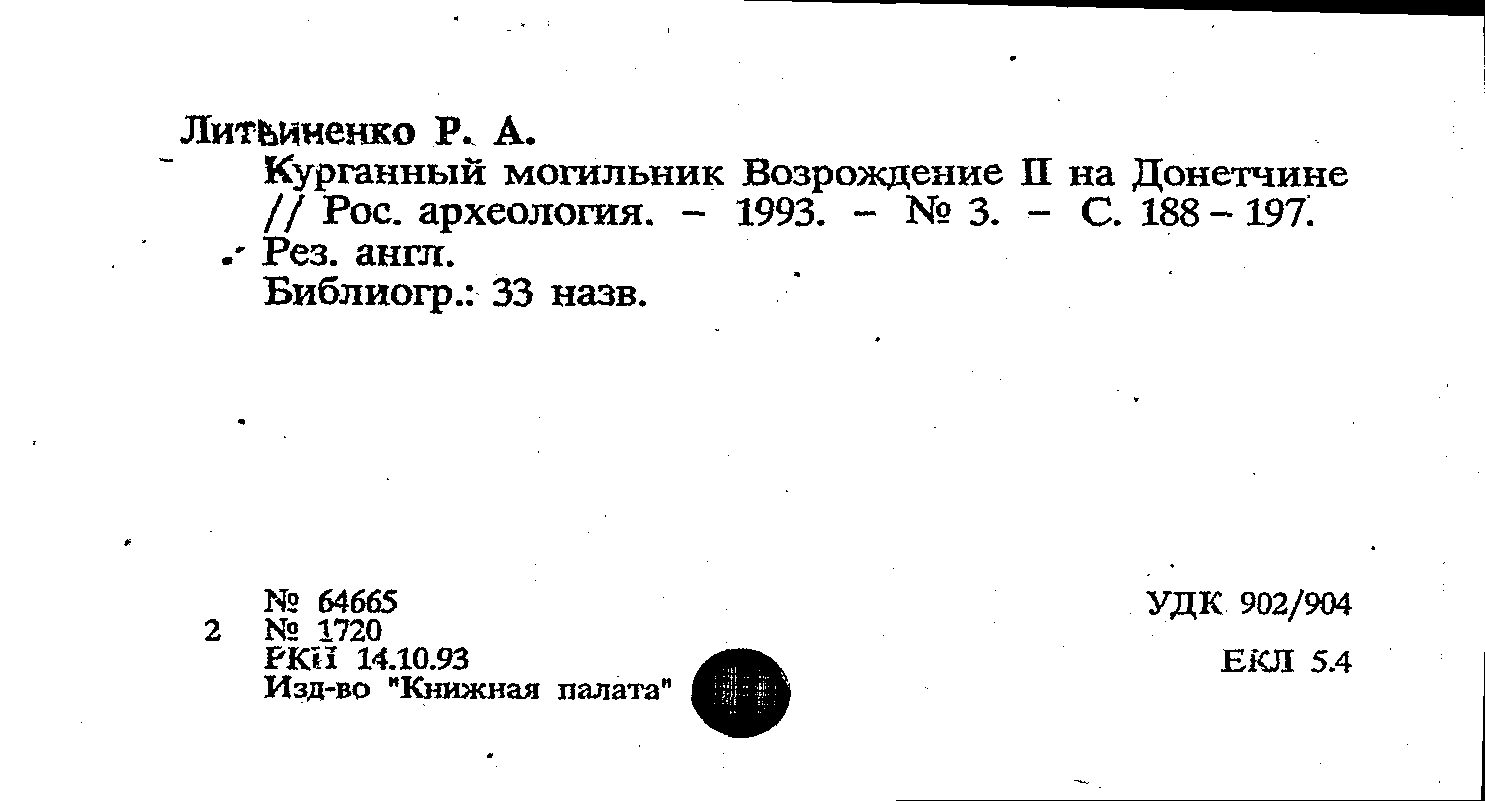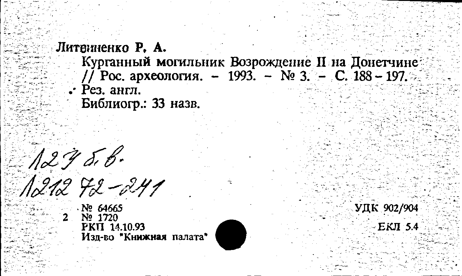 Книга (аналит. описание): Курганный могильник Возрождение II на Донетчине