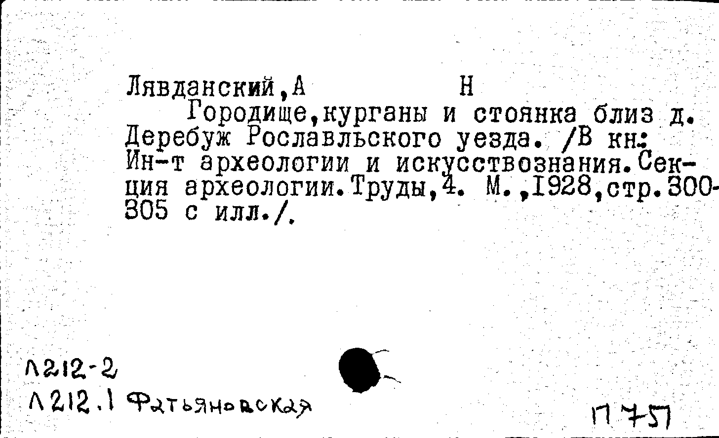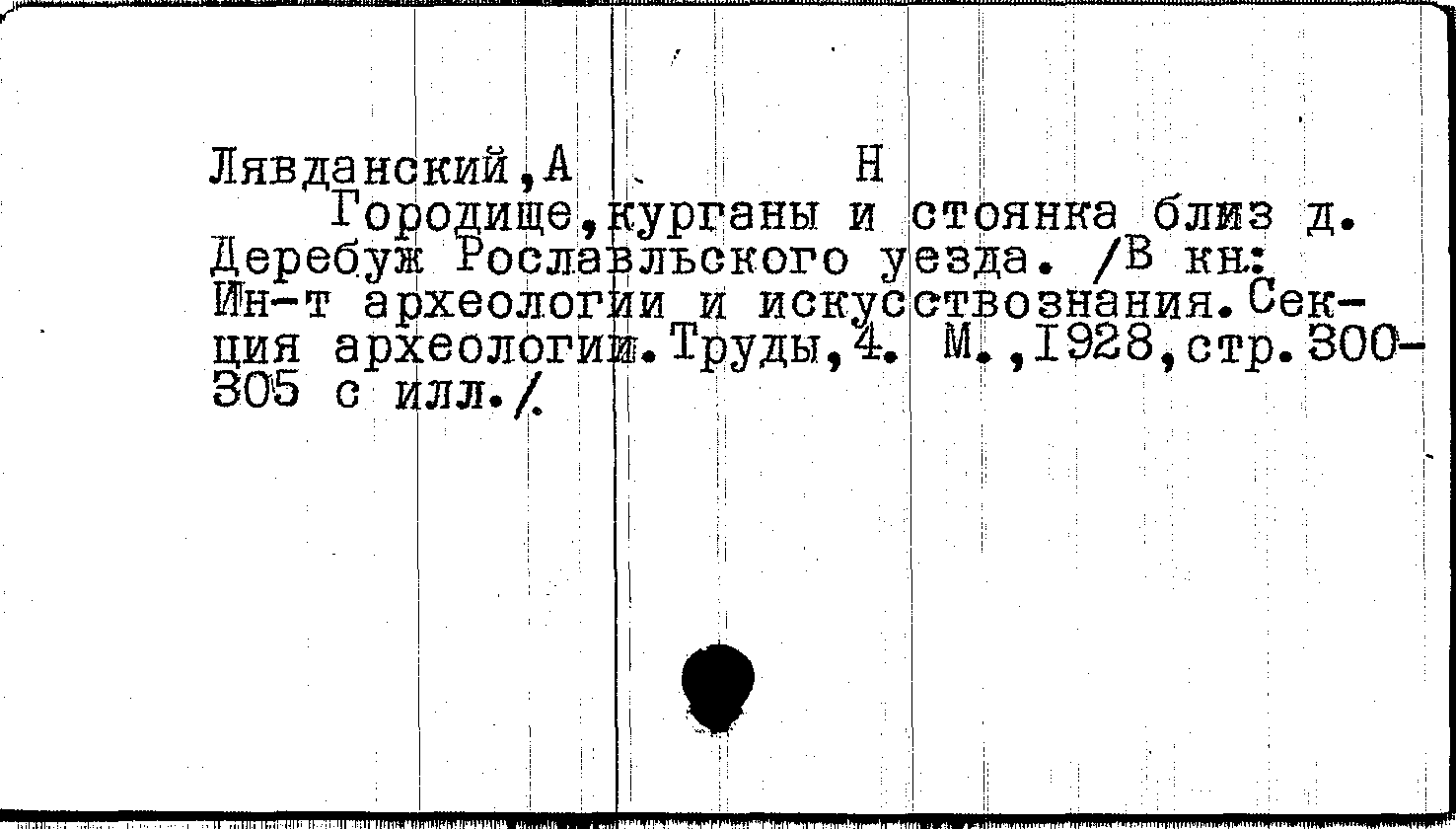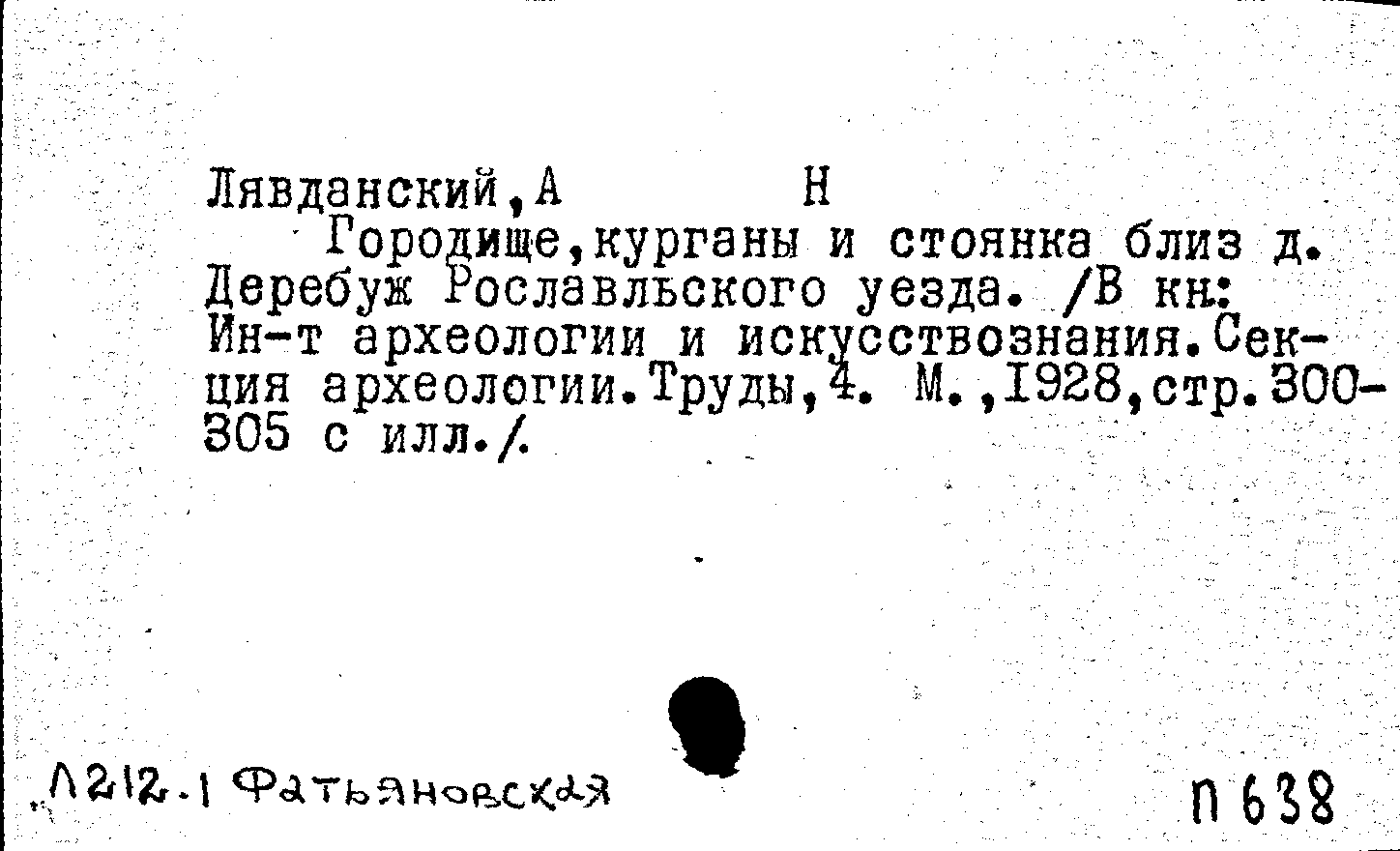Книга (аналит. описание): Городище, курганы и стоянка близ д. Деребуж Рославльского уезда