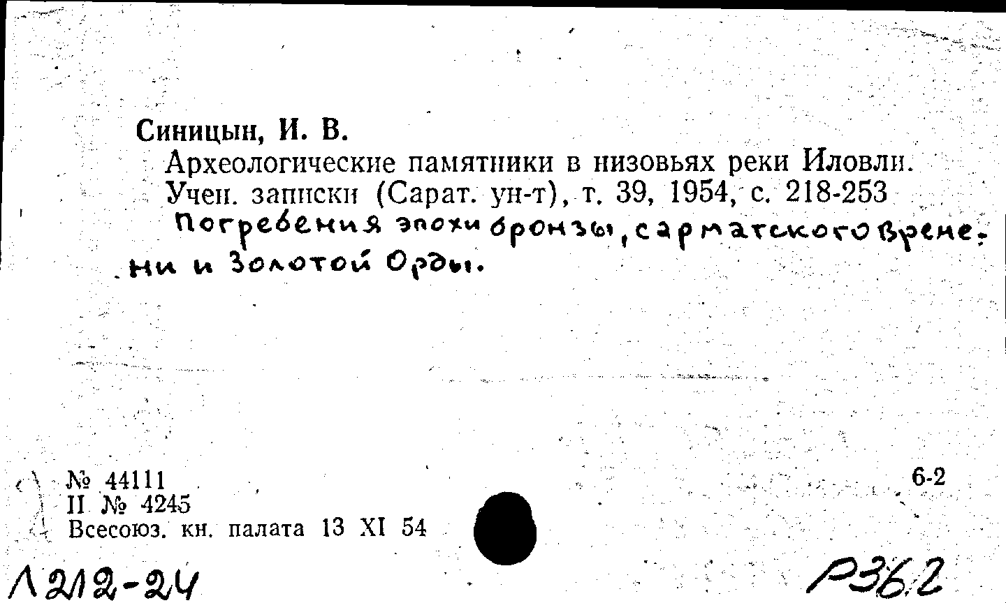 Книга (аналит. описание): Археологические памятники в низовьях реки Иловли