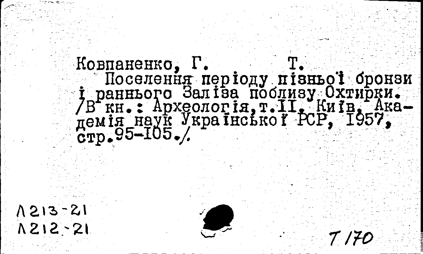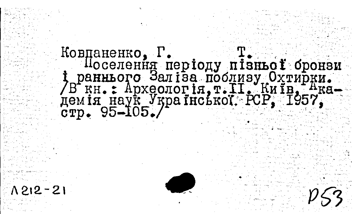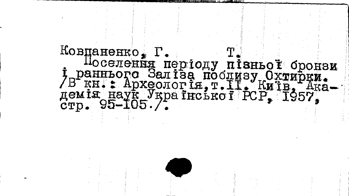 Книга (аналит. описание): Поселення перiоду пiзньоi бронзи i раннього Залiза поблизу Охтирки