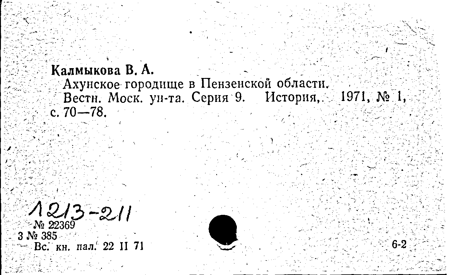 Книга (аналит. описание): Ахунское городище в Пензенской области