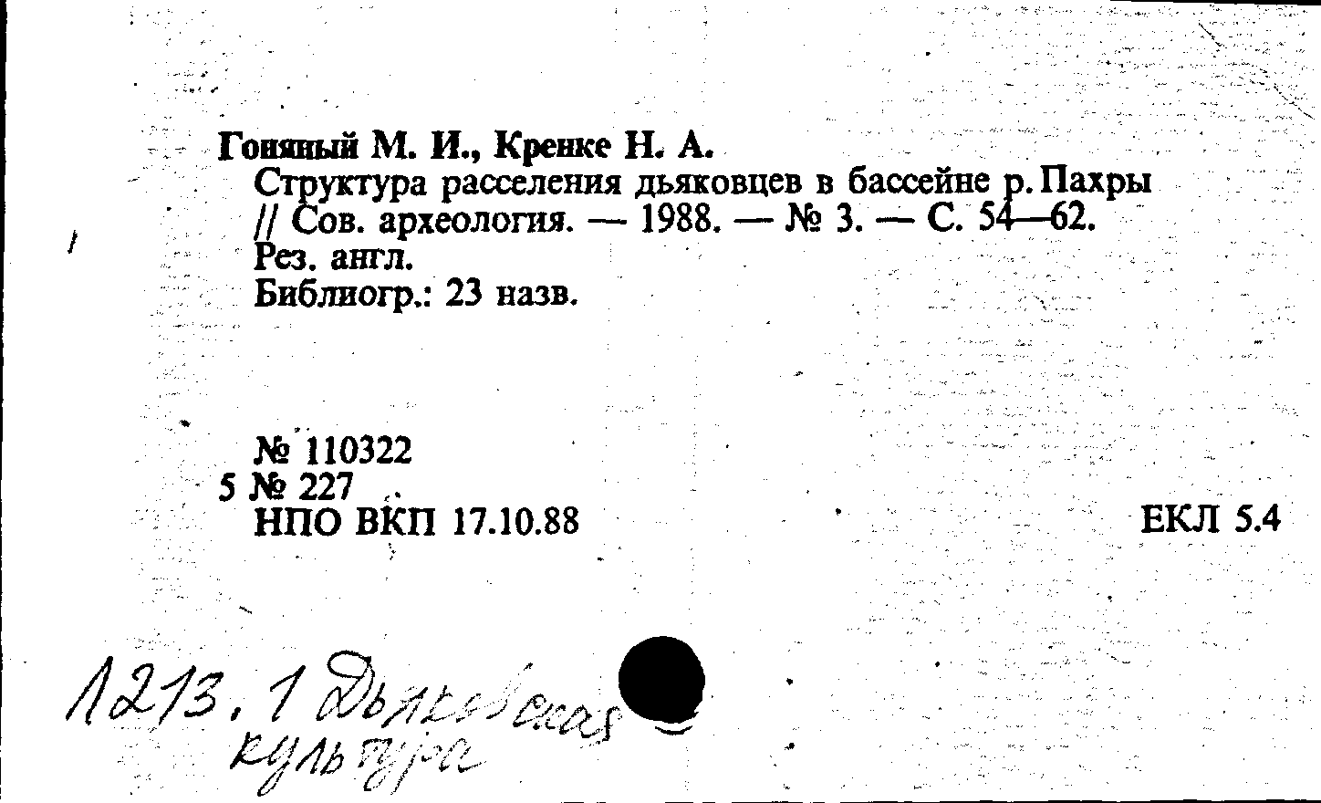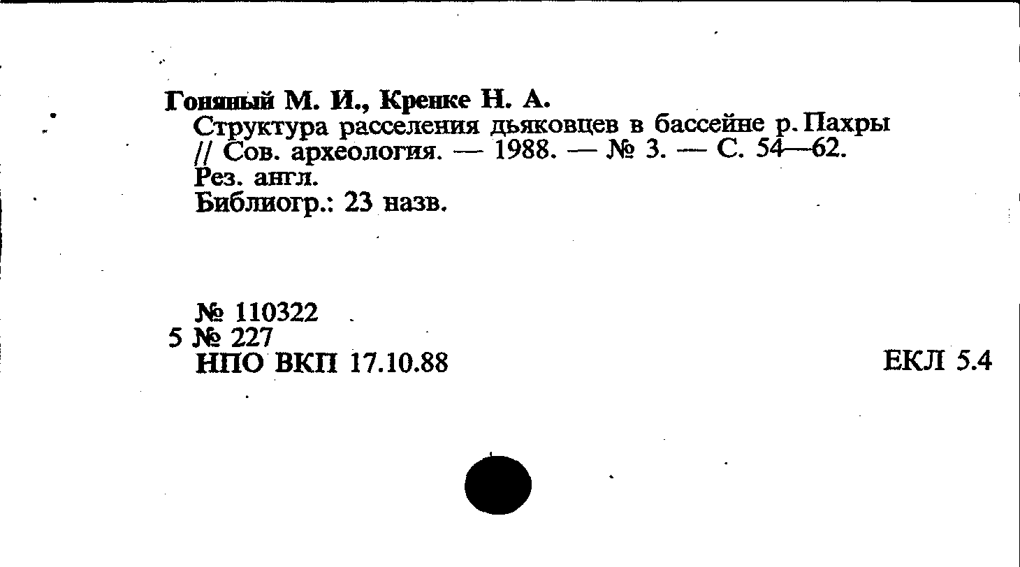 Статья: Структура расселения дьяковцев в бассейне реки Пахры. Советская археология, № 3 /1988: № 3 /1988