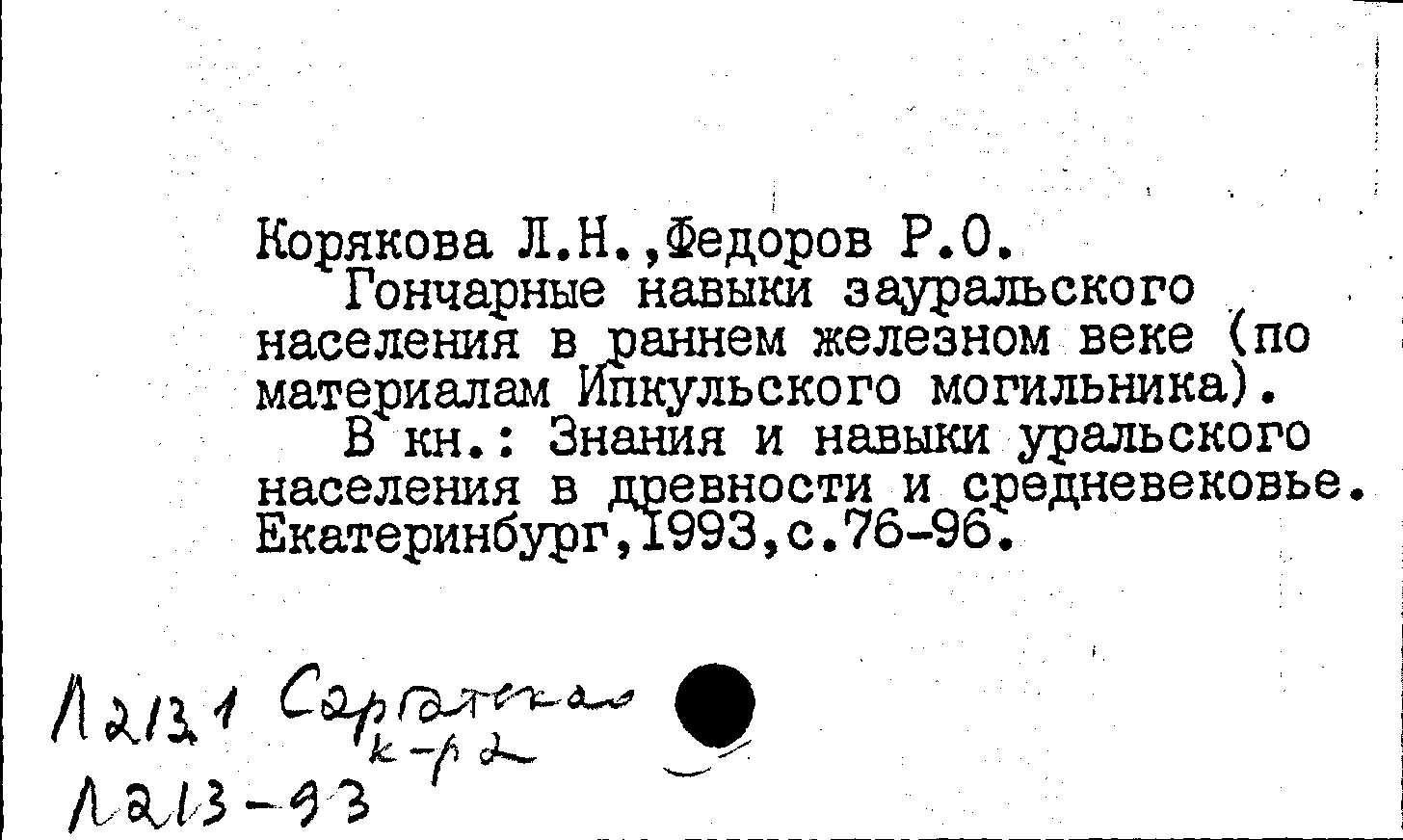 Книга (аналит. описание): Гончарные навыки зауральского населения в раннем железном веке (по материалам Ипкульского могильника)