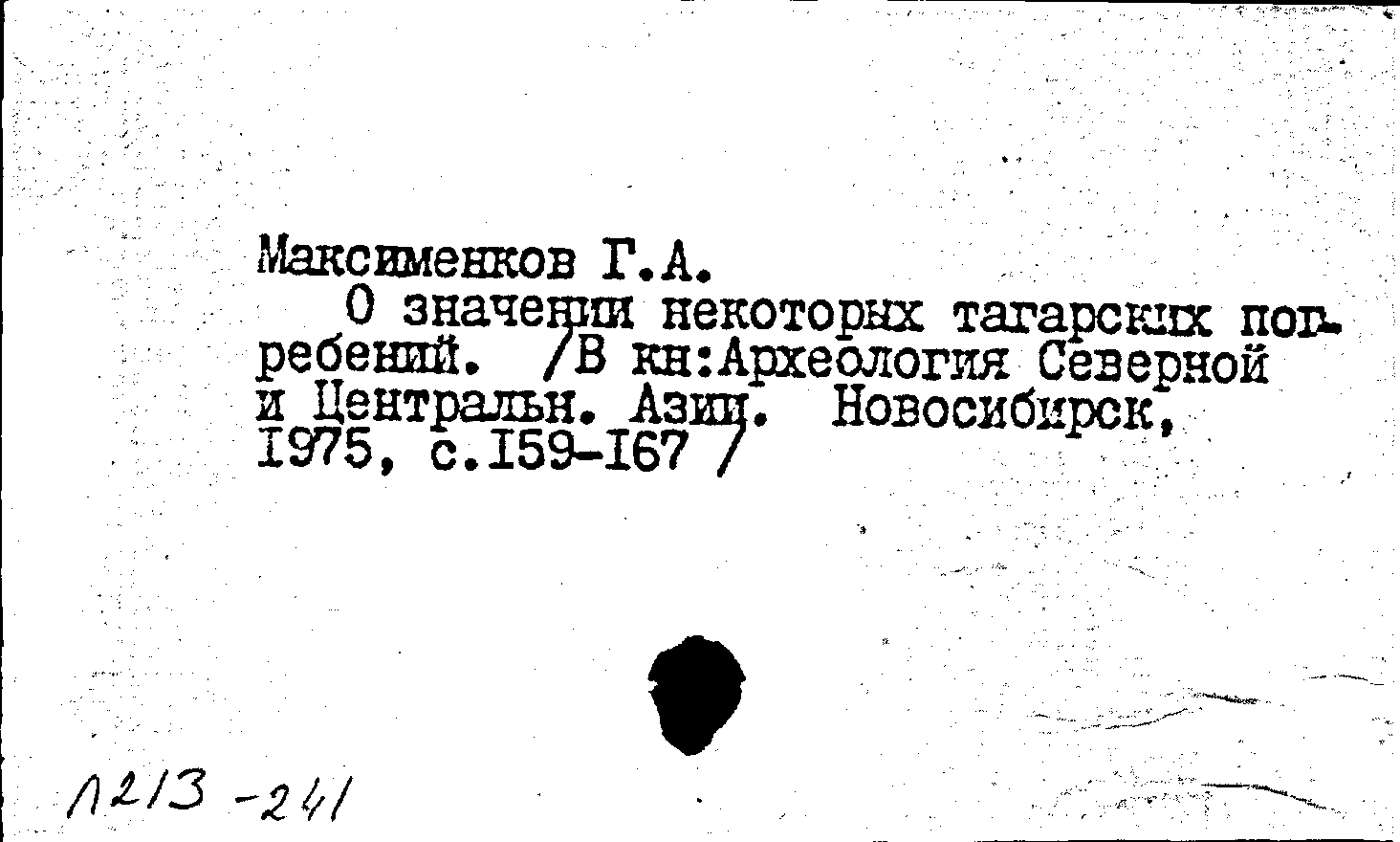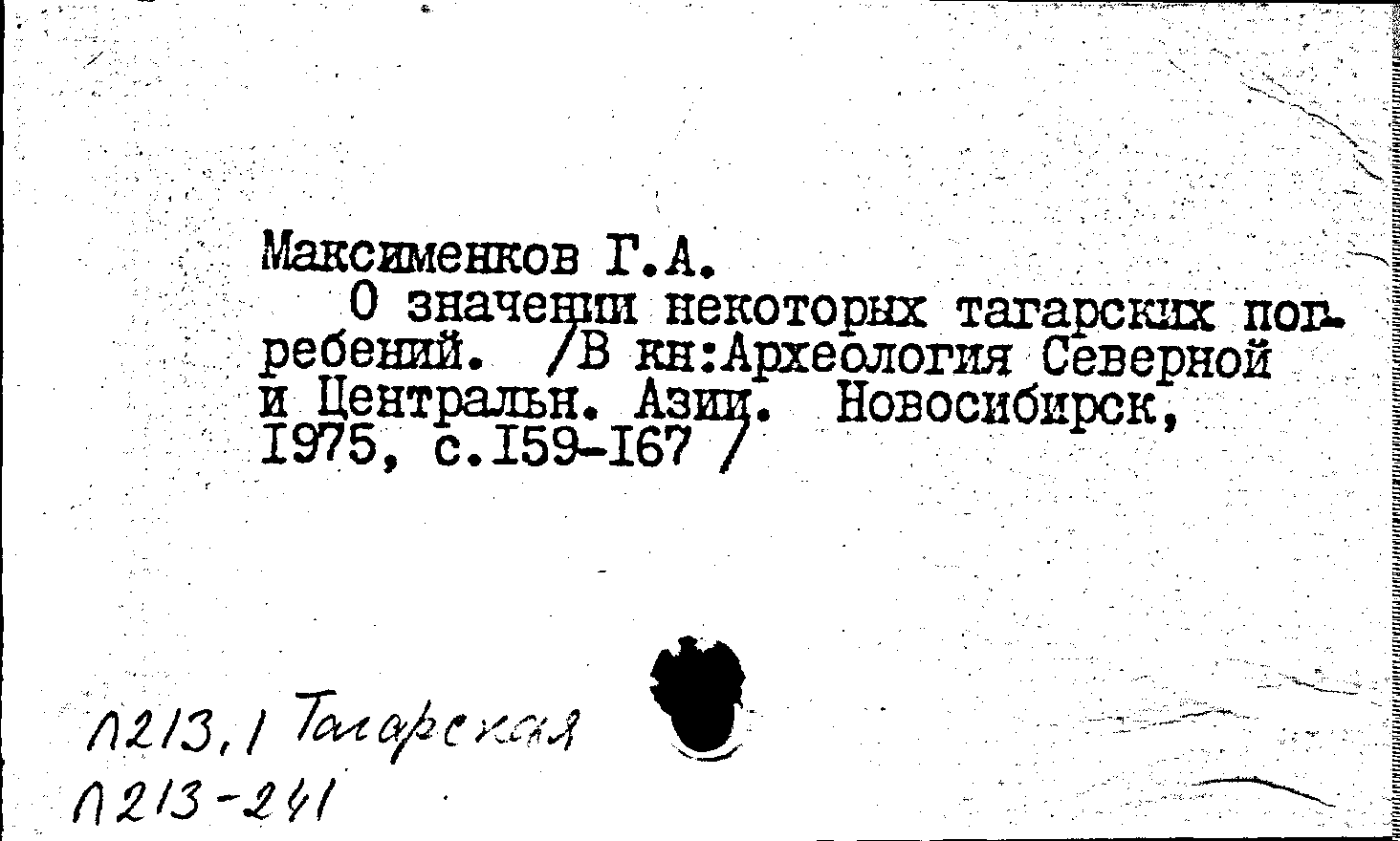 Книга (аналит. описание): О значении некоторых тагарских погребений
