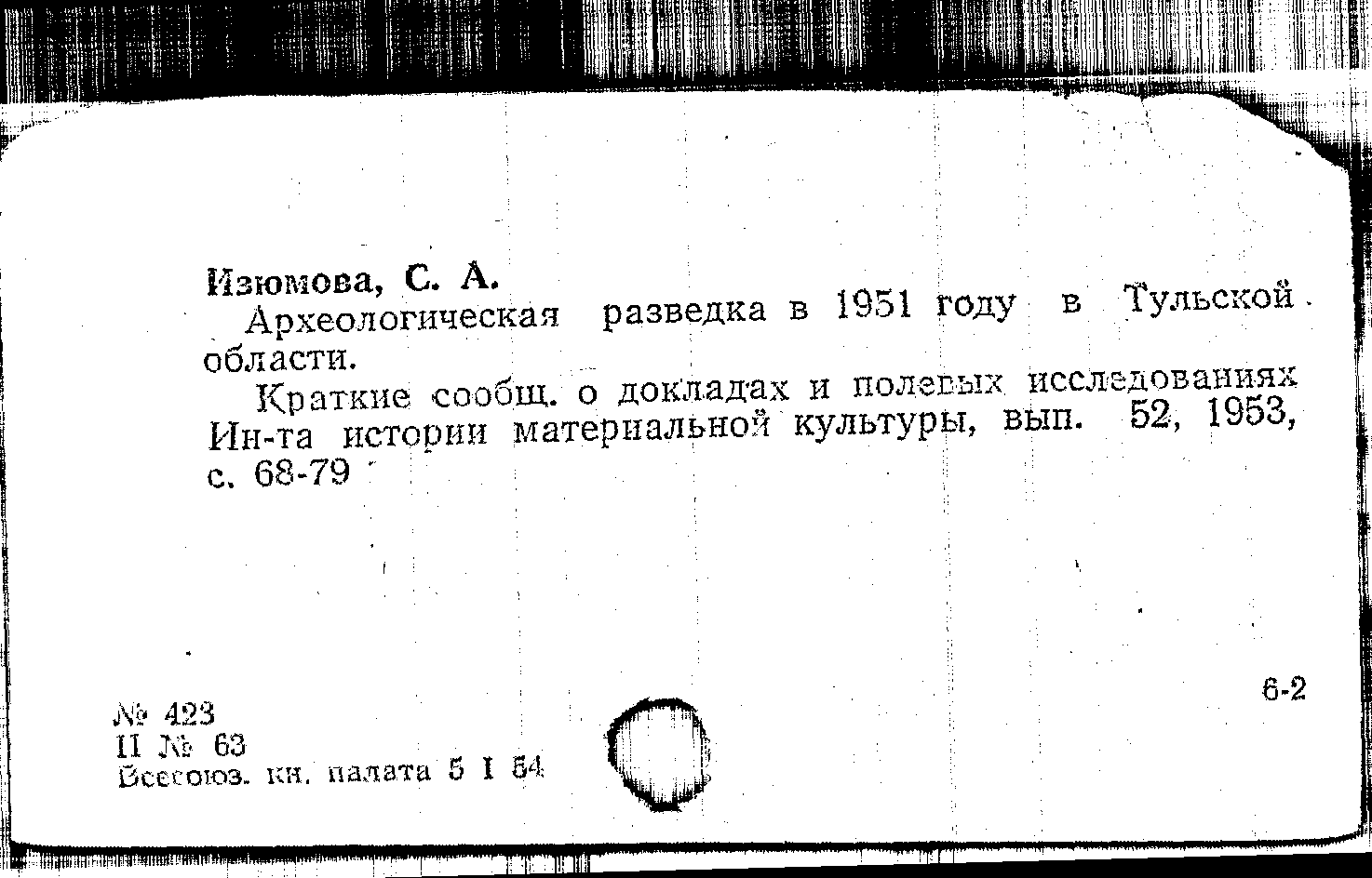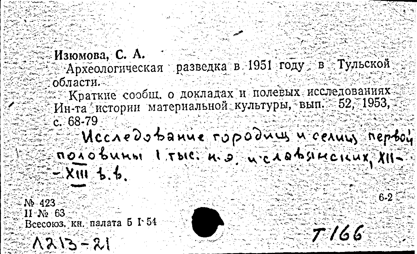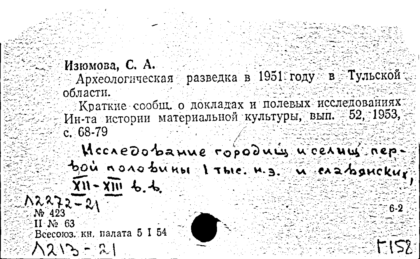 Археологическая разведка в 1951 году в Тульской области