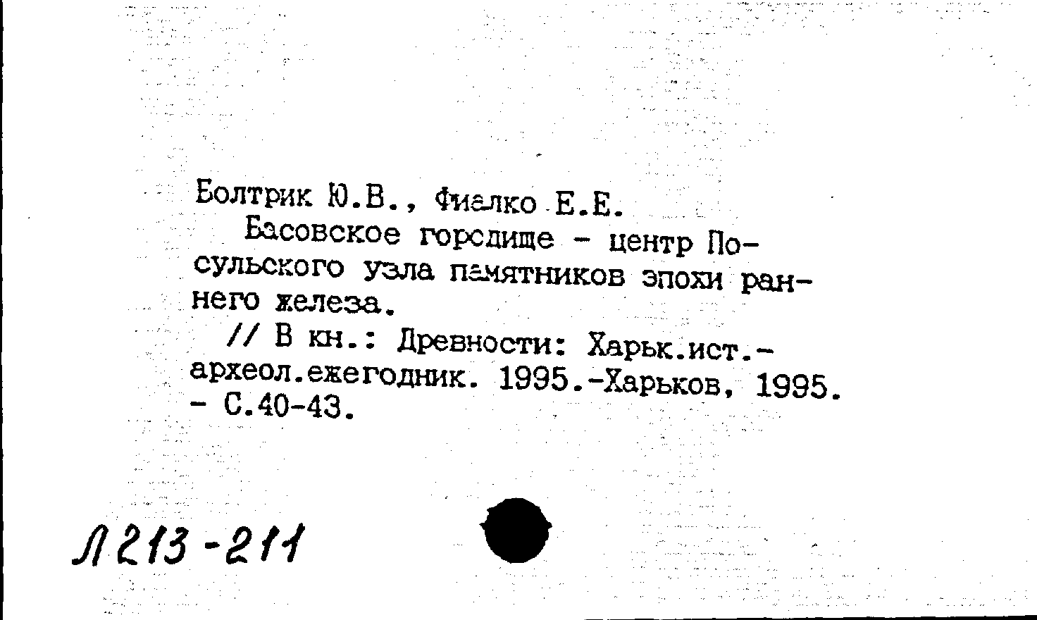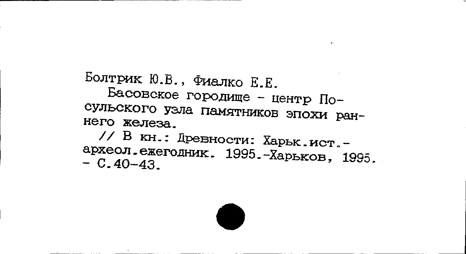 Книга (аналит. описание): Басовское городище - центр Посульского узла памятников эпохи раннего железа
