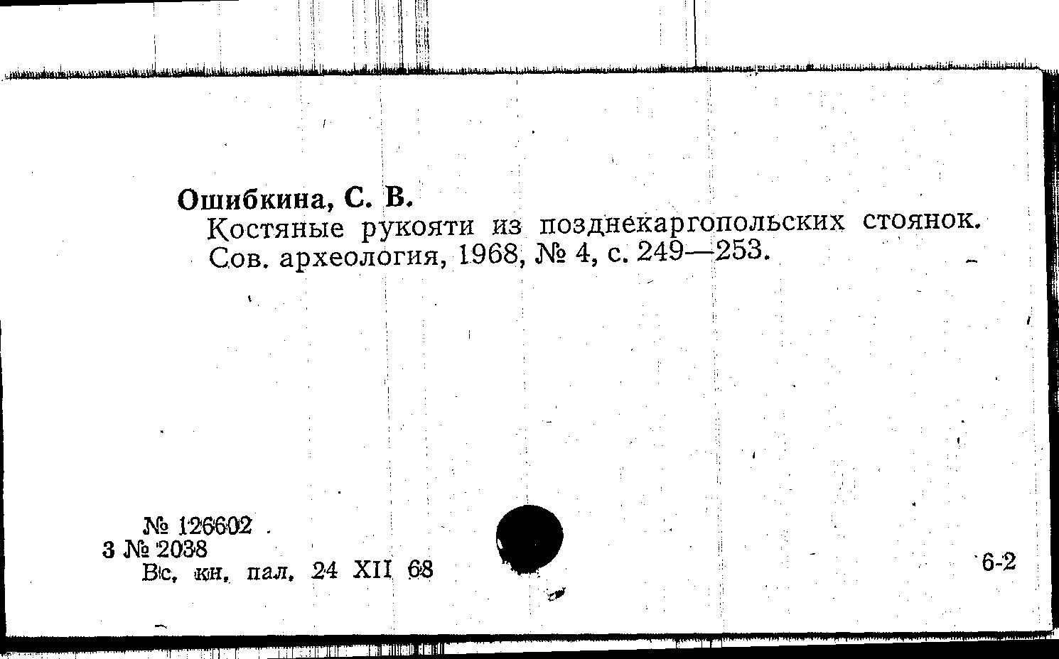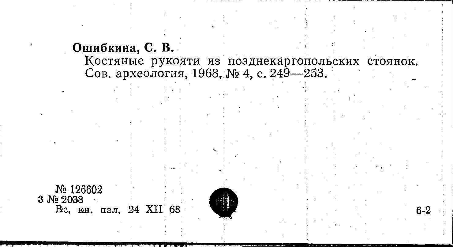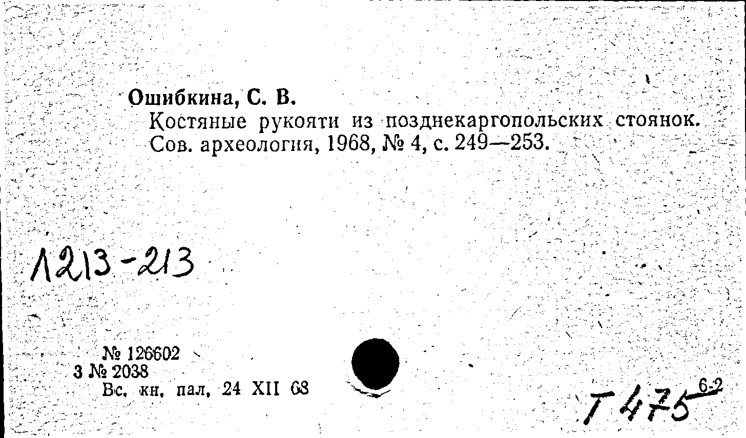 Статья: Костяные рукояти из позднекаргопольских стоянок. Советская археология, № 4 /1968: № 4 /1968