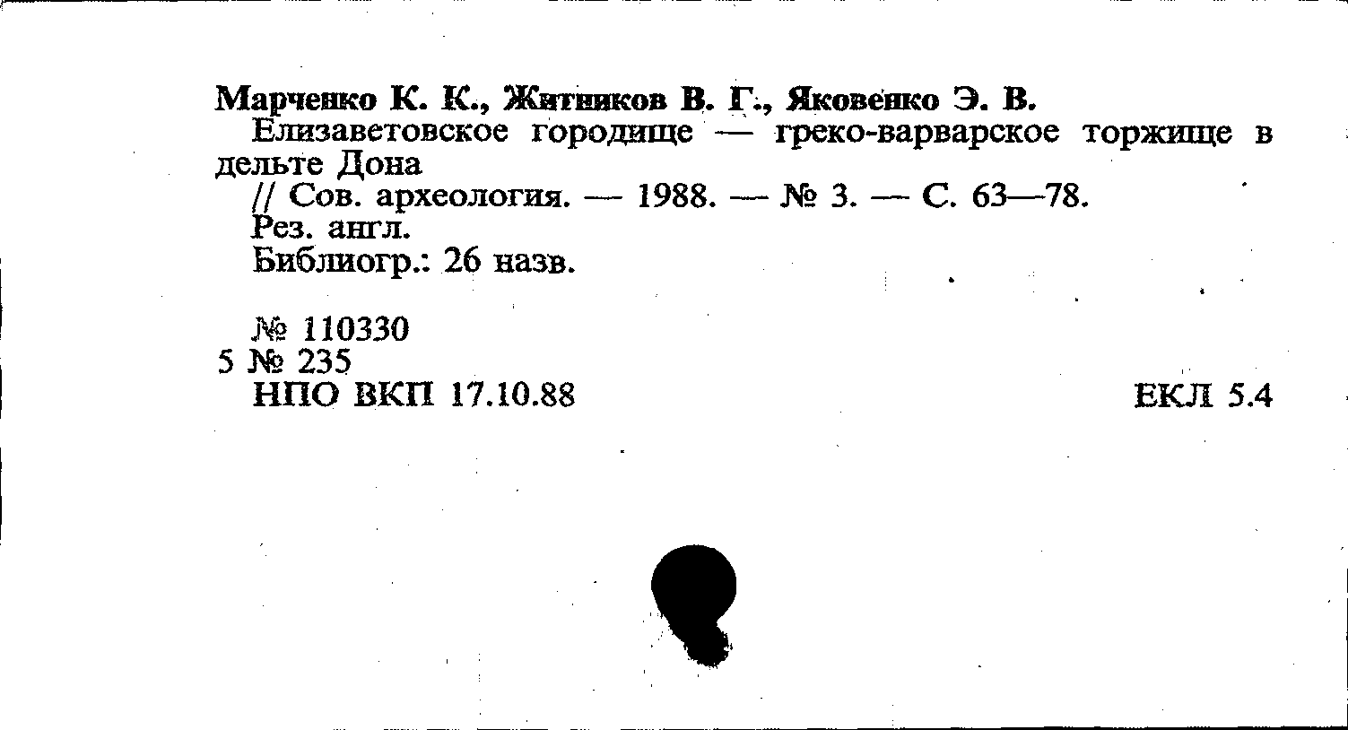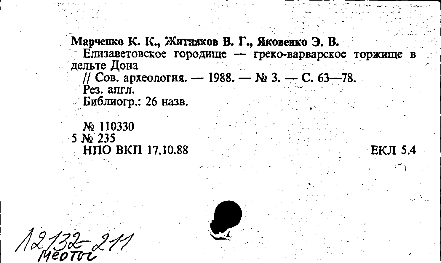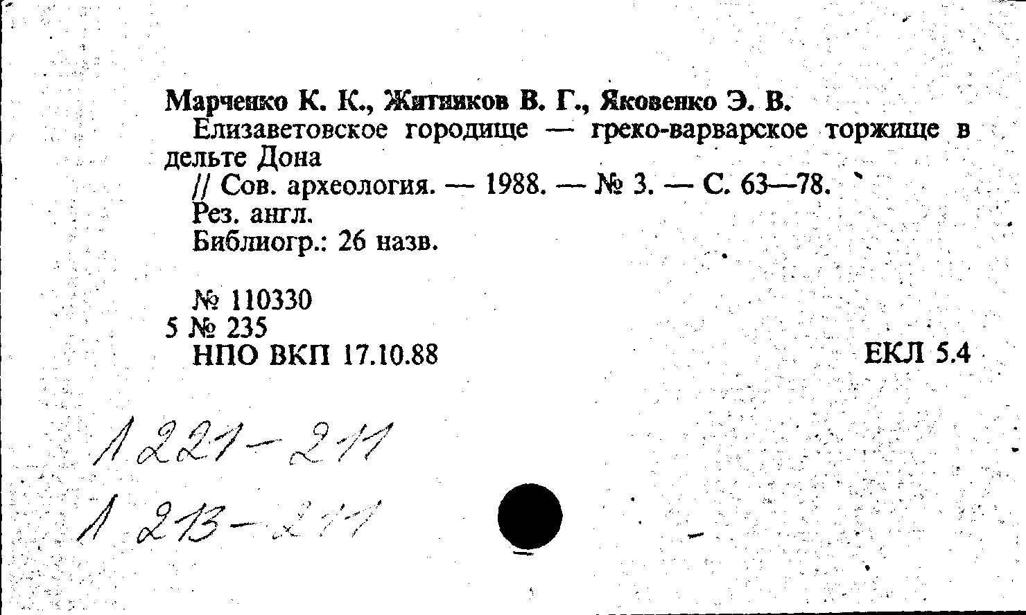 Статья: Елизаветовское городище - греко-варварское торжище в дельте Дона. Советская археология, № 3 /1988: № 3 /1988