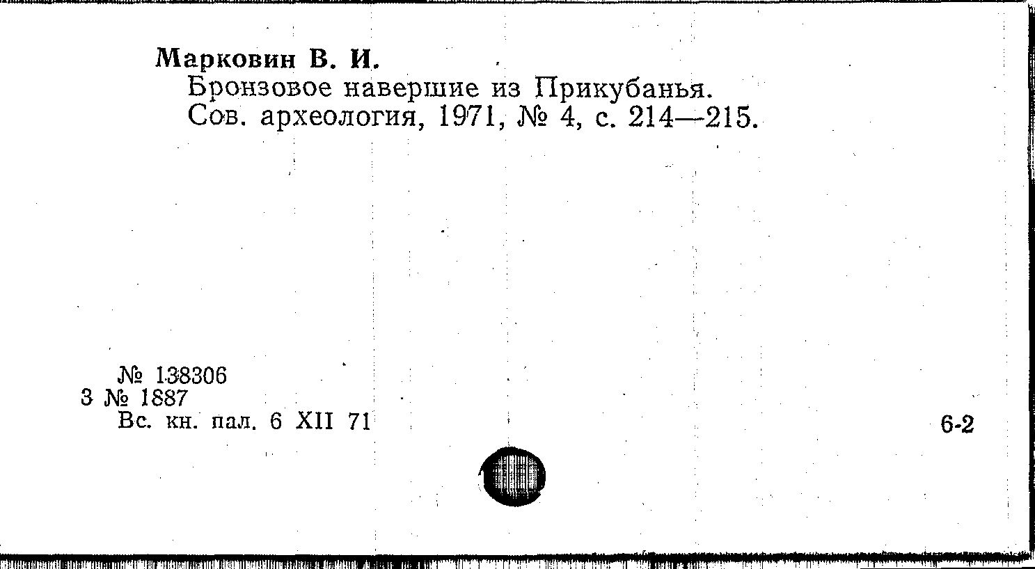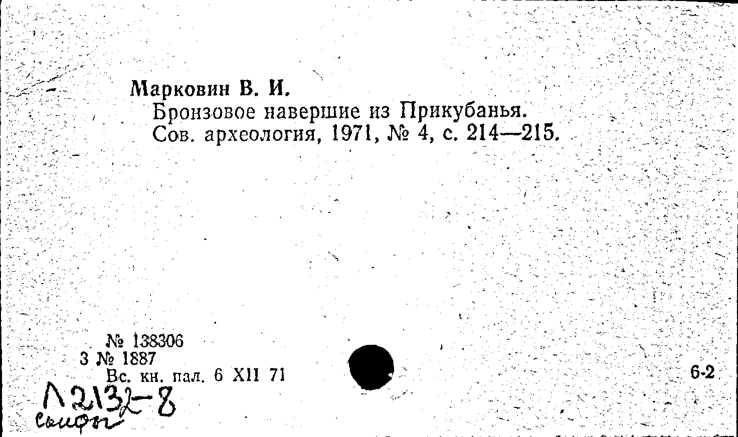 Статья: Бронзовое навершие из Прикубанья. Советская археология, № 4 /1971: № 4 /1971