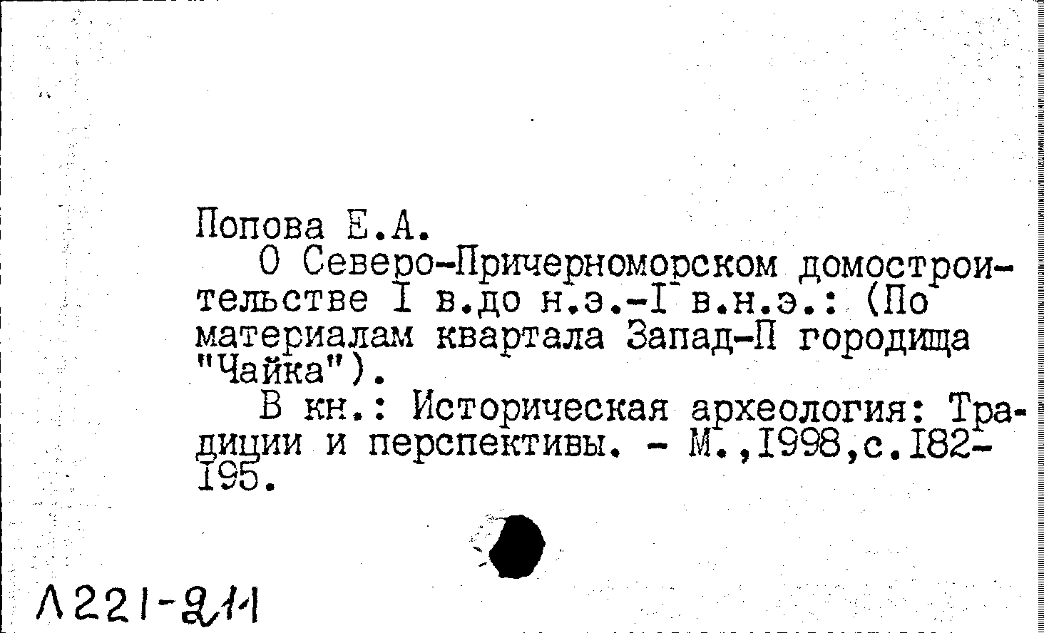 Античная археология Северного Причерноморья \ Отд. типы памятников \ Жилища (47)