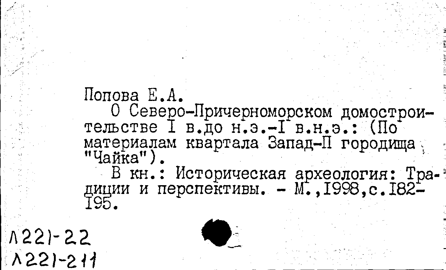 Книга (аналит. описание): О Северо-Причерноморском домостроительстве I в. до н. э. - I в. н. э.