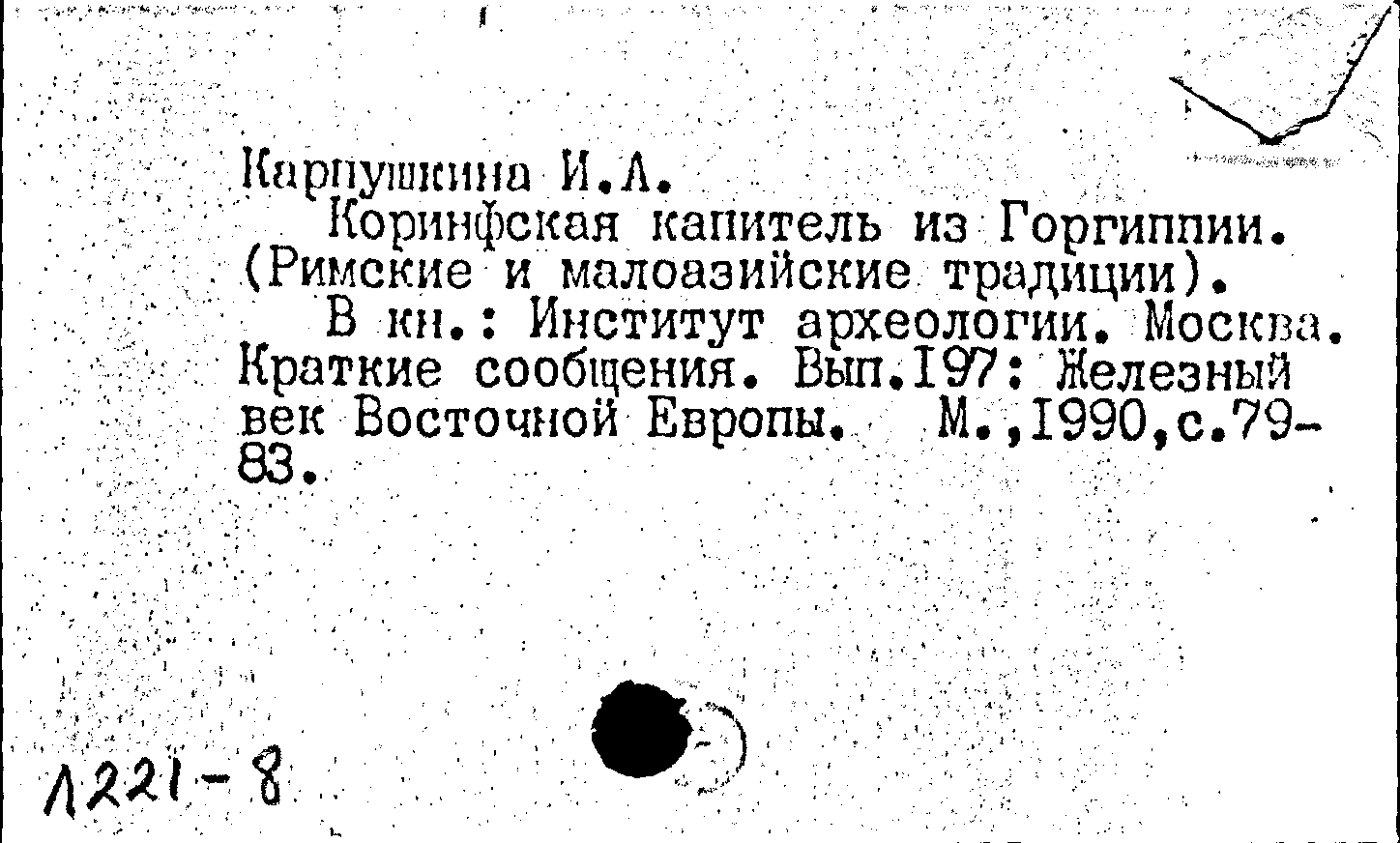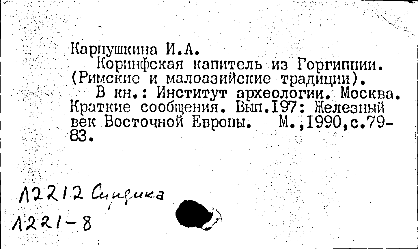 Книга (аналит. описание): Коринфская капитель из Горгиппии
