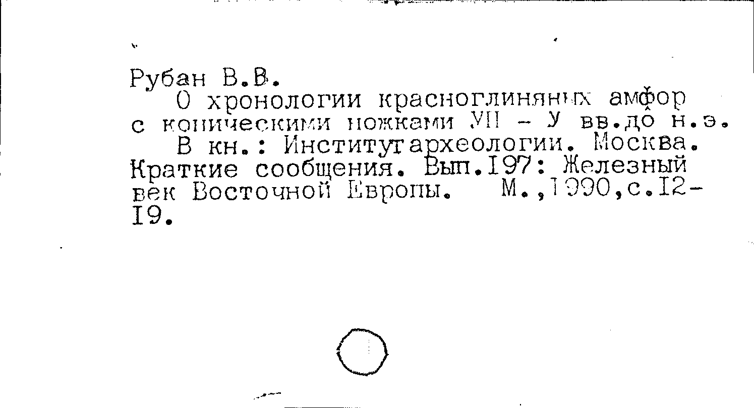 Книга (аналит. описание): О хронологии красноглиняных амфор с коническими ножками VII-V вв. до н. э.
