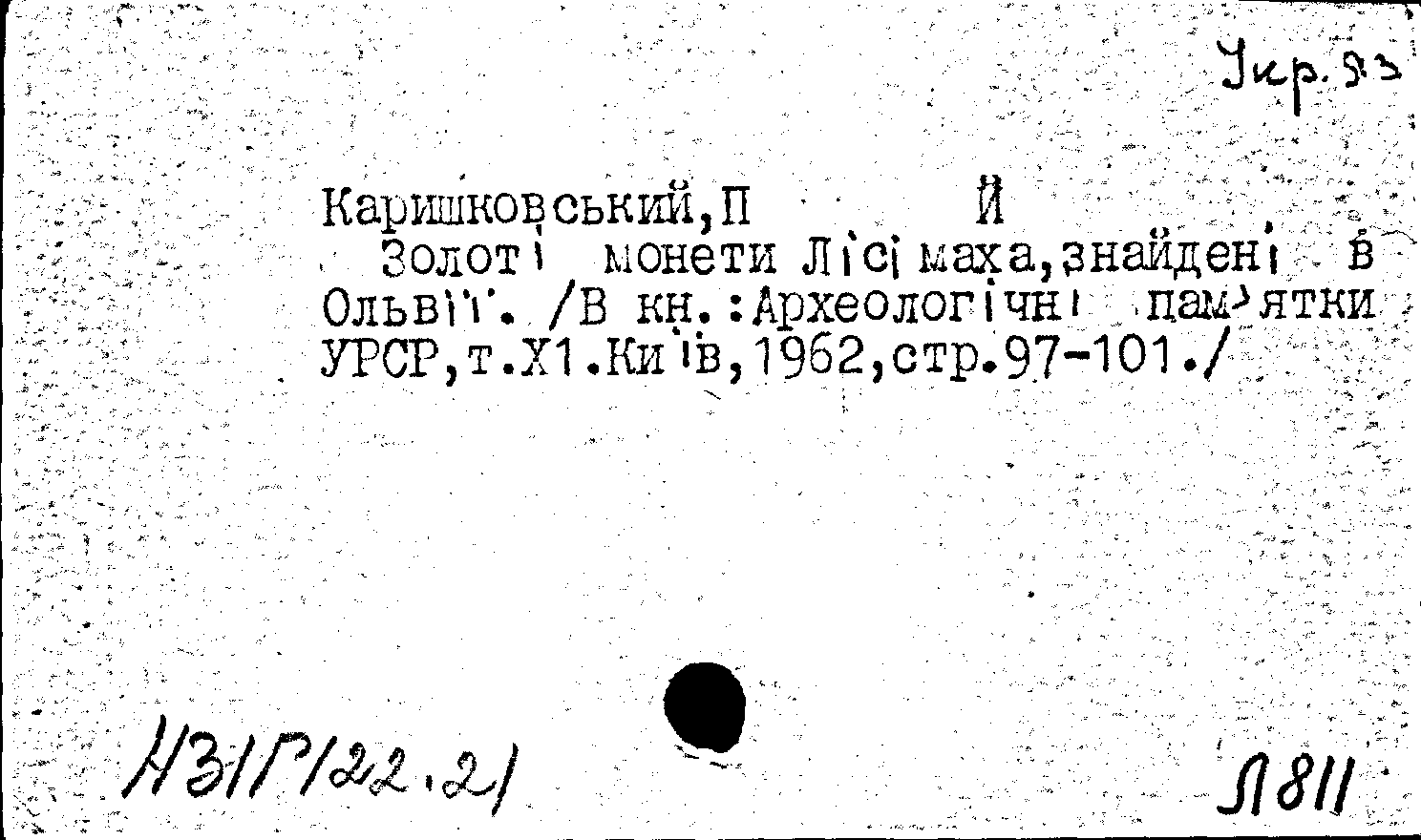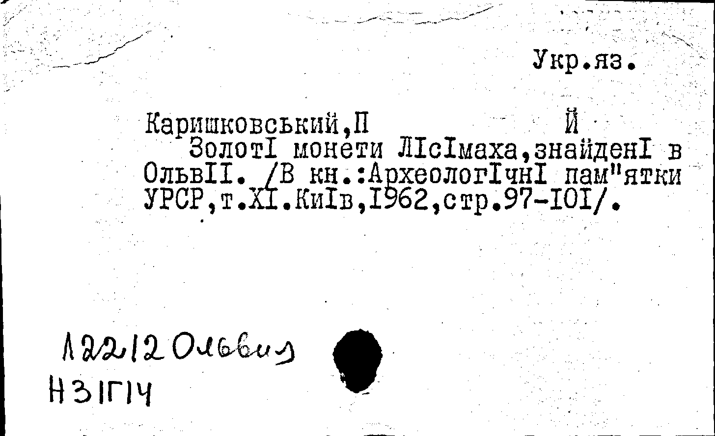 Книга (аналит. описание): Золотi монети Лiсiмаха, знайденi в Ольвii