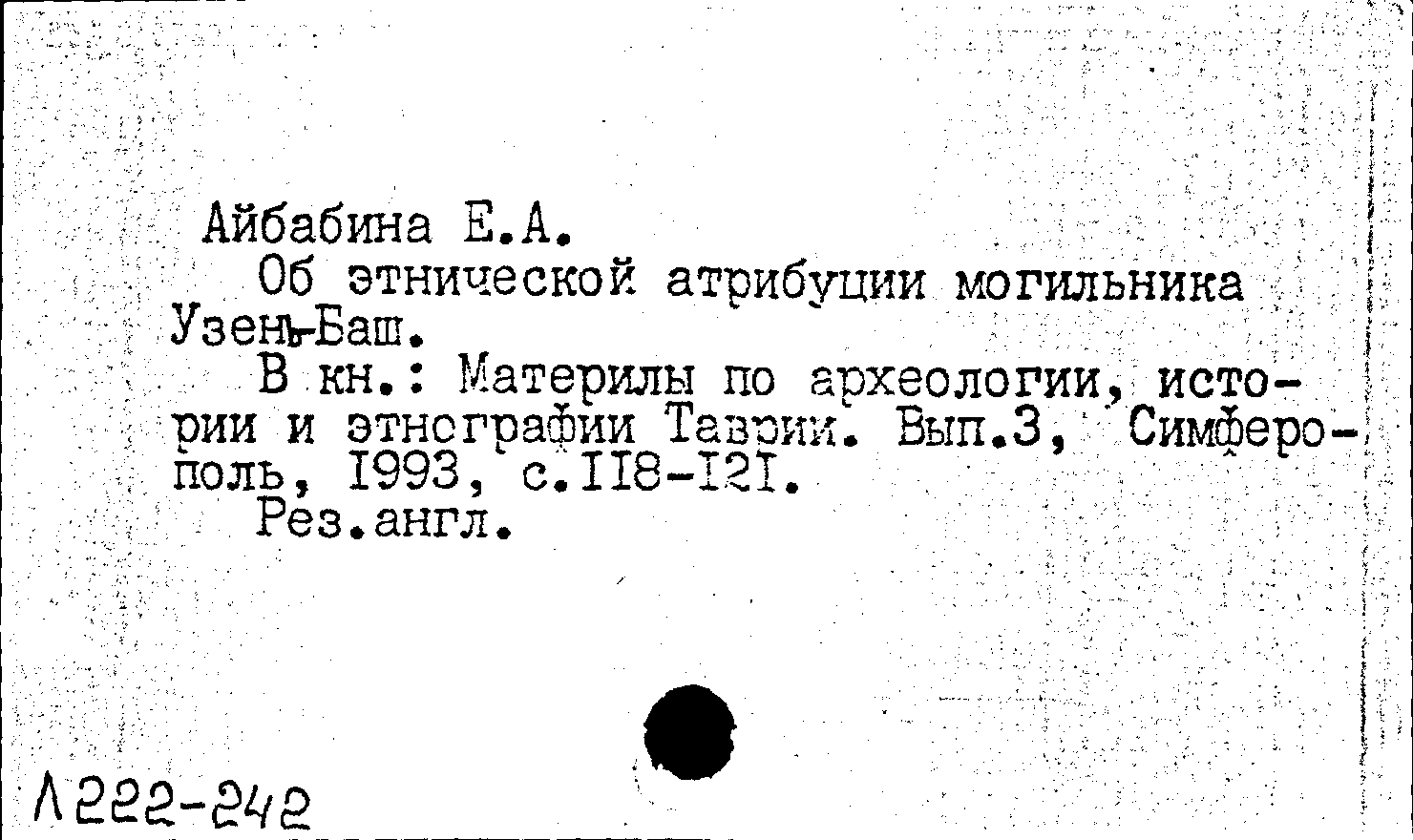Книга (аналит. описание): Об этнической атрибуции могильника Узень-Баш